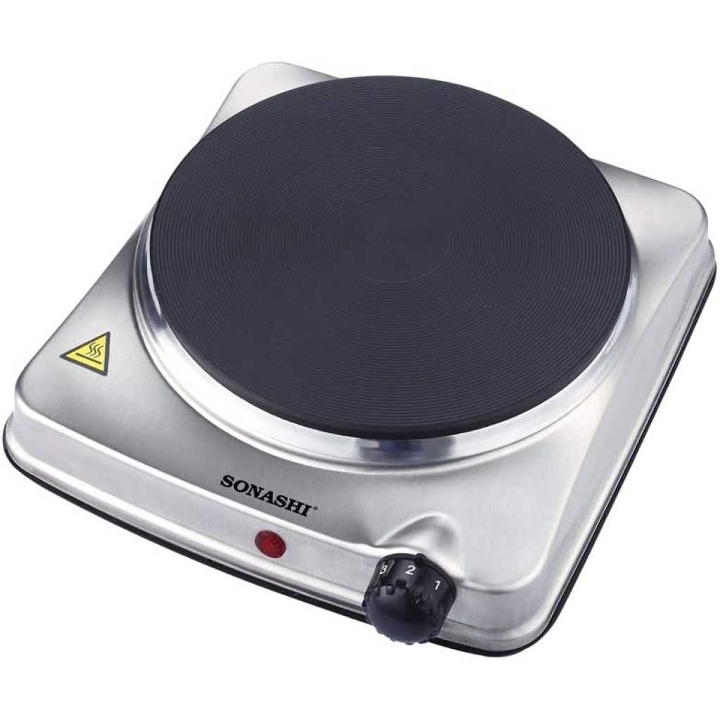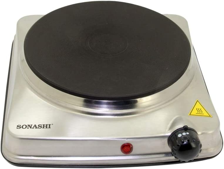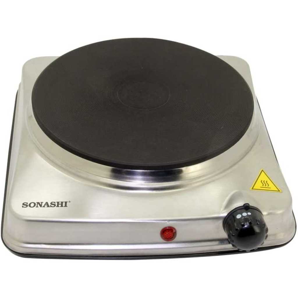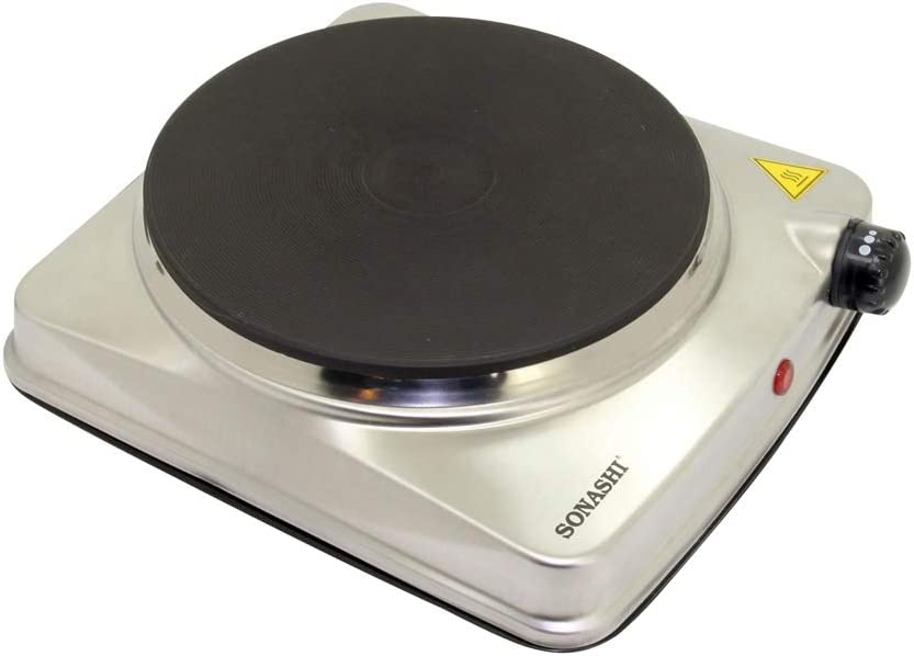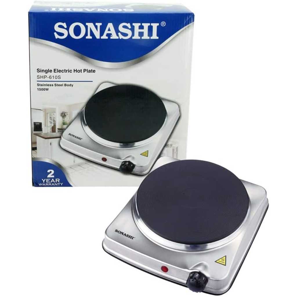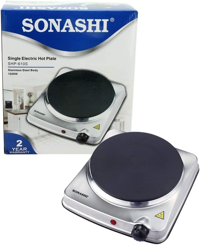 Sonashi Electric Hot Plate Single Burner SHP-610S – 185MM, 1500W Class 1 Hot Plate with Stainless Steel Body, Auto Thermostat, On/Off Indicator Light | Kitchen Appliances. Sonashi electric hot plate single burner is a popular substitute for regular gas stoves. Powered by 1500W, this hot plate enables the user to cook, reheat all food items on it. The compact hot plate is easy to carry. It is ideal for single-use and commonly used in hostels, canteen, homes, offices and traveling or hiking. The cook top has stainless steel housing with a wide 185 mm diameter plate. It can accommodate a frying pan, small pressure cooker, wok and other cooking vessels. The hot plate for cooking has a different level temperature adjustable knob and automatic thermostat to ensure that food does not over or undercook. It has an on/off indicator light and non-slip rubber feet that enhance user safety. It operates on the standard power supply of 220-240V-50/60Hz. Key Features: Sonashi Electric Hot Plate Single Burner SHP-610S. Dynamic Kitchen Tool: Sonashi hot plate electric is a popular substitute for regular gas stoves. Powered by 1500W, this hot plate enables the user to cook, reheat all food items on it. Portable Hot Plate: This compact hot plate is easy to carry. It is ideal for single-use and commonly used in hostels, canteen, homes, offices, and traveling or hiking. Construction & Design: The cook top has stainless steel housing with a wide 185mm diameter plate. It can accommodate a frying pan, small pressure cooker, wok, and other cooking vessels. Adjustable Temperature Control: The hot plate for cooking has a different level temperature adjustable knob and automatic thermostat to ensure that food does not over or undercook. Product Specifications: Sonashi single burner hot plate has an on/off indicator light and non-slip rubber feet that enhance user safety. It operates on the standard power supply of 220-240V-50/60Hz.