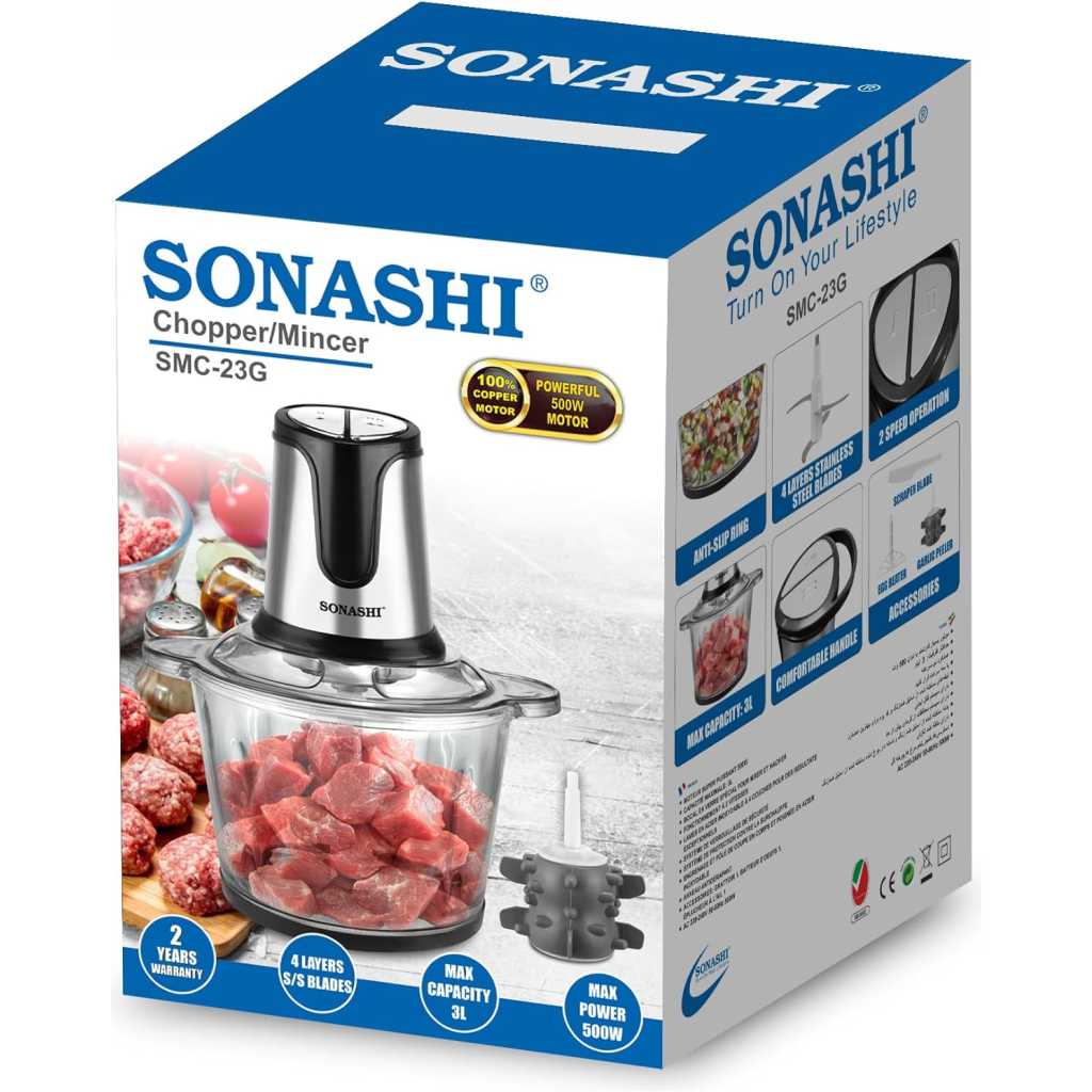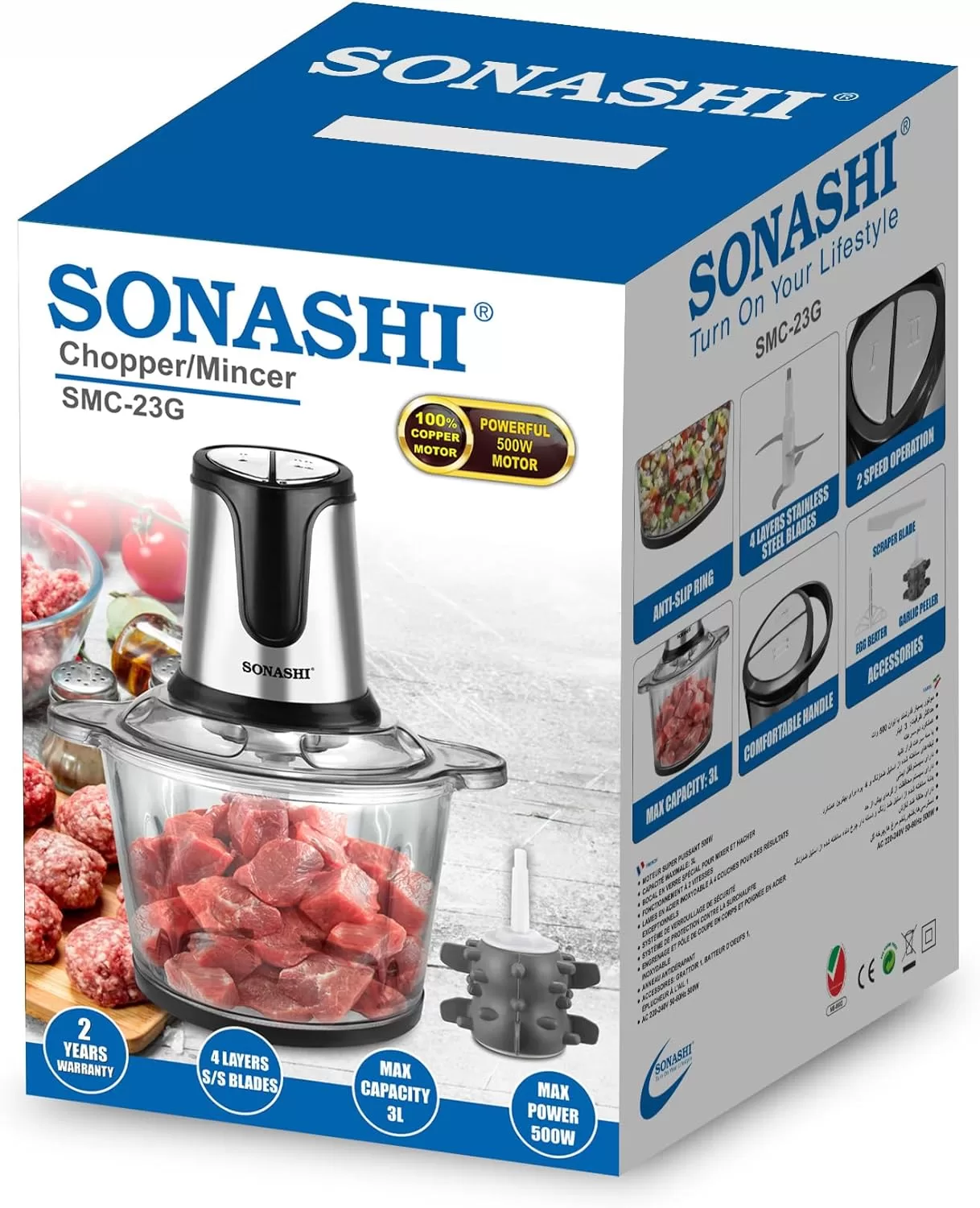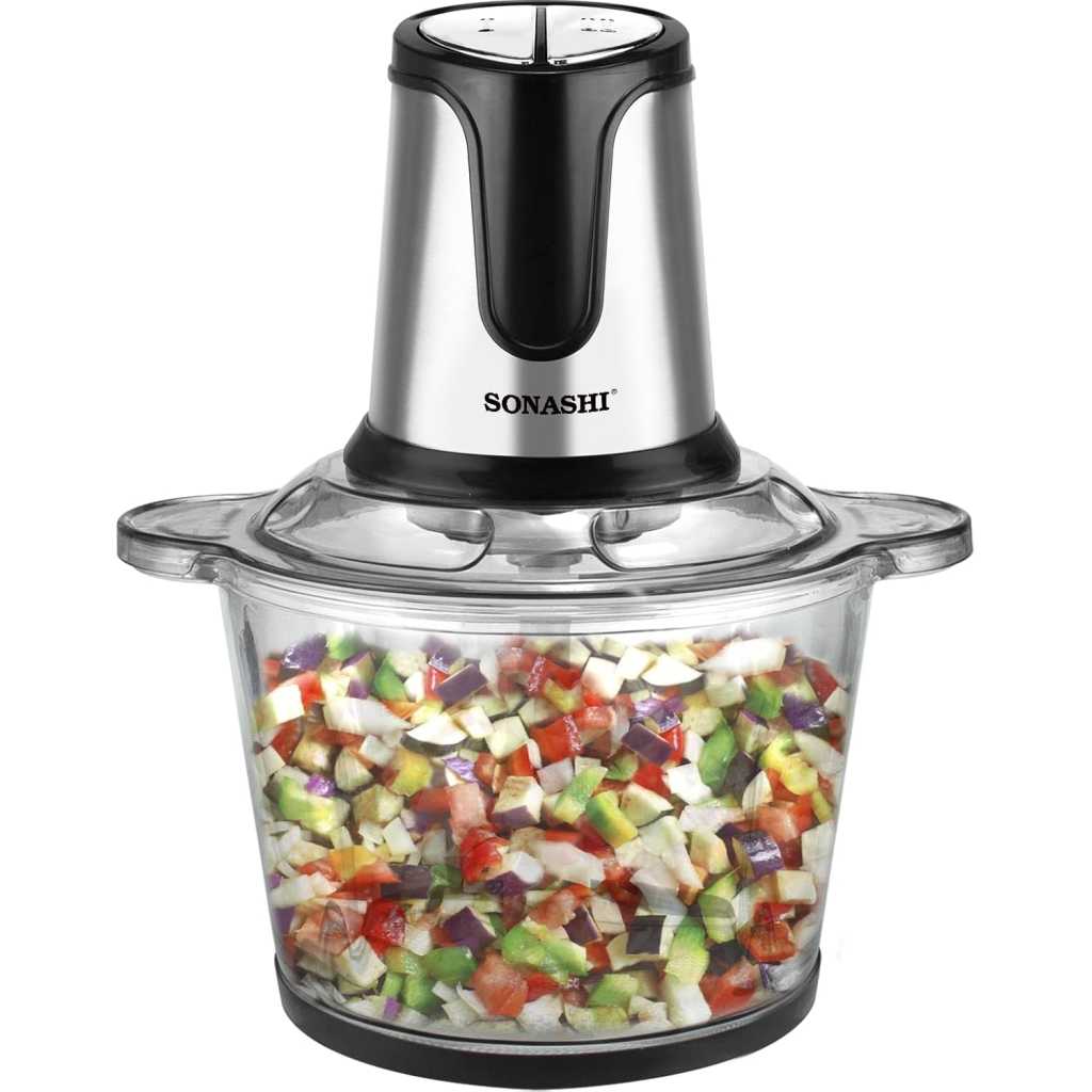 Multipurpose Chopper: This is a multi purpose Chopper that cuts, grinds, chops, blends and mixes a variety of fruits and vegetables. The grinder allows you to mince your foods finely, which makes this Chopper very versatile. Lightweight & Portable: The Sonashi Chopper has a compact and lightweight design so it is ideal for minimizing space. It is a perfect kitchen carry-on tool when you travel. Sharp Blades: This vegetable Chopper has double stainless steel blades that make perfect razor-sharp cuts whenever you process your food. The durable, fine quality blades make this cutter highly efficient. Easy to Use: With a highly convenient design, this stainless steel Chopper is very easy to handle, use and clean. Its overall construction is aimed at preventing risk of injury. Specifications: The Sonashi Bowl Chopper has a capacity of 3000ml. It is a 300w Chopper and its double blades are made of stainless steel. It includes accessories and attachments such as Scraper Blade, Egg Beater, Garlic Peeler and a glass jar. Key Features: Multipurpose Chopper: This is a multi purpose Chopper that cuts, grinds, chops, blends and mixes a variety of fruits and vegetables. The grinder allows you to mince your foods finely, which makes this Chopper very versatile. Lightweight & Portable: The Sonashi Chopper has a compact and lightweight design so it is ideal for minimizing space. It is a perfect kitchen carry-on tool when you travel. Sharp Blades: This vegetable Chopper has double stainless steel blades that make perfect razor-sharp cuts whenever you process your food. The durable, fine quality blades make this cutter highly efficient. Easy to Use: With a highly convenient design, this stainless steel Chopper is very easy to handle, use and clean. Its overall construction is aimed at preventing risk of injury. Specifications: The Sonashi Bowl Chopper has a capacity of 3000ml. It is a 300w Chopper and its double blades are made of stainless steel. It includes accessories and attachments such as Scraper Blade, Egg Beater, Garlic Peeler and a glass jar.