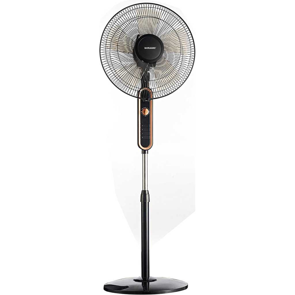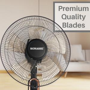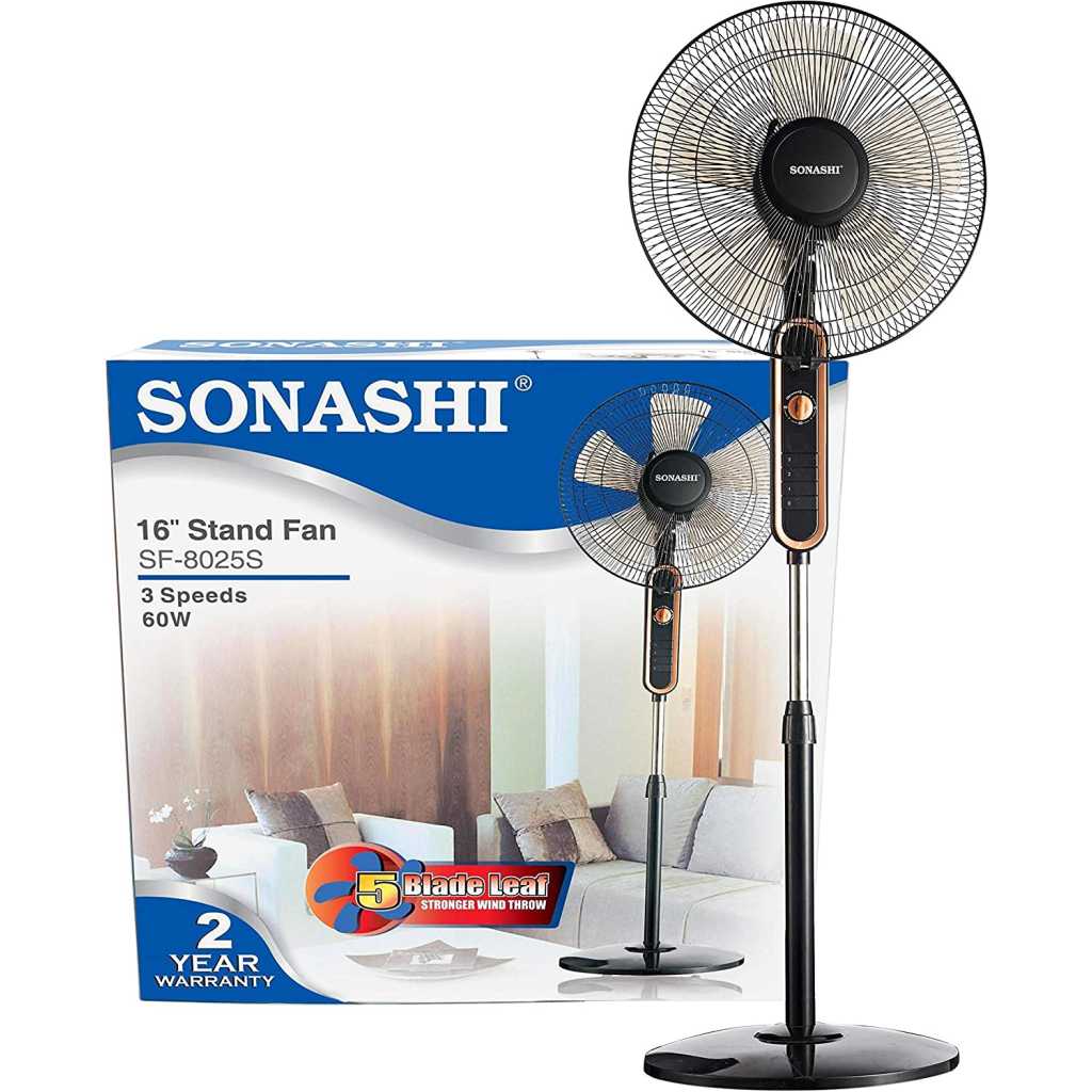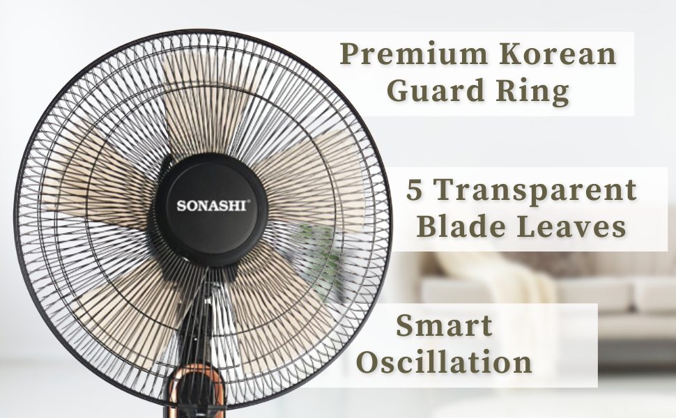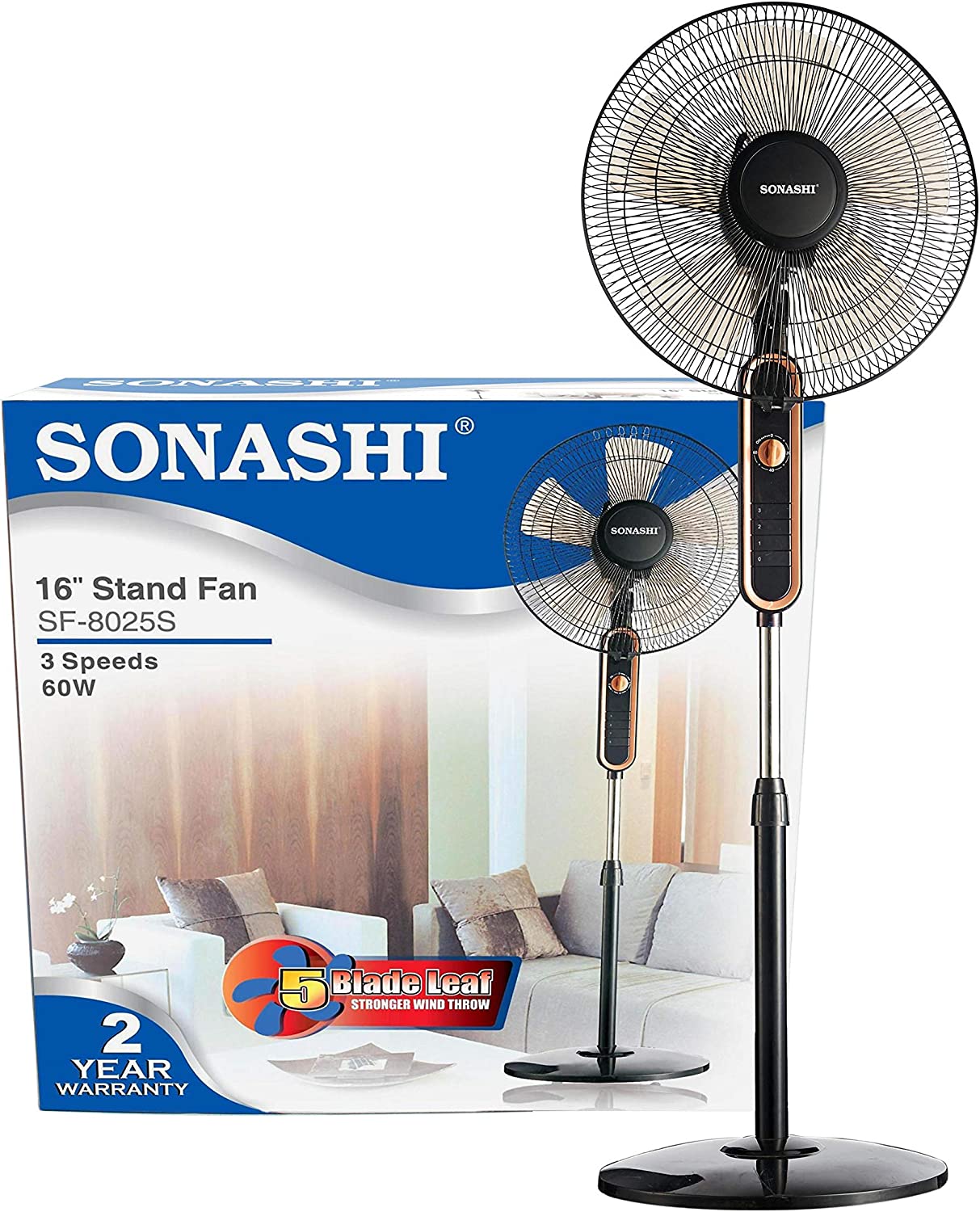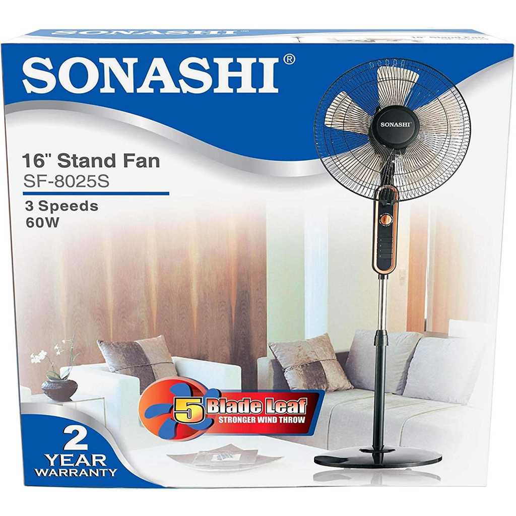 SONASHI SF-8025S Stand Fan – [White] 16 in. Pedestal Fan with 3 Speed Switch, 5 Transparent Blade Leaf, Korean Guard Ring, Low Noise Operation | Perfect Home Décor Appliance. Key Features: SONASHI SF-8025S Stand Fan – [White]. Floor Fan: Add this efficiently designed Sonashi standing fan to your living spaces, including study room, bedroom, guest bedroom, hallway and lobby to enjoy cool breezes with just one click. It embraces a solid white colour that blends effortlessly with your interior settings. Smart Design: The Sonashi tower fan can be adjusted to different heights as required. It comes with a 5-transparent blade leaf, which provides maximum air to create a cool and pleasant ambience. Excellent Functionality: With a 3-speed switch and oscillation function, this adjustable pedestal fan offers unmatchable functionality and a speed option to adjust the airflow as desired. It also features a Korea guard ring that holds the fan mesh in place. Great Performance: The 5-blade pedestal fan features a self-protection system that protects its functionality when overheated. This tower fan runs efficiently on a 60W in-built copper motor that ensures a low noise operation. Product Description: This 3-speed fan by Sonashi measures 16 in. in height and comes in elegant white colour. It works efficiently on 220 to 240 volts of power and produces about 50 to 60 Hz low-noise with its 60W copper motor.