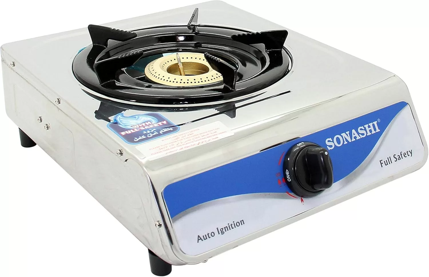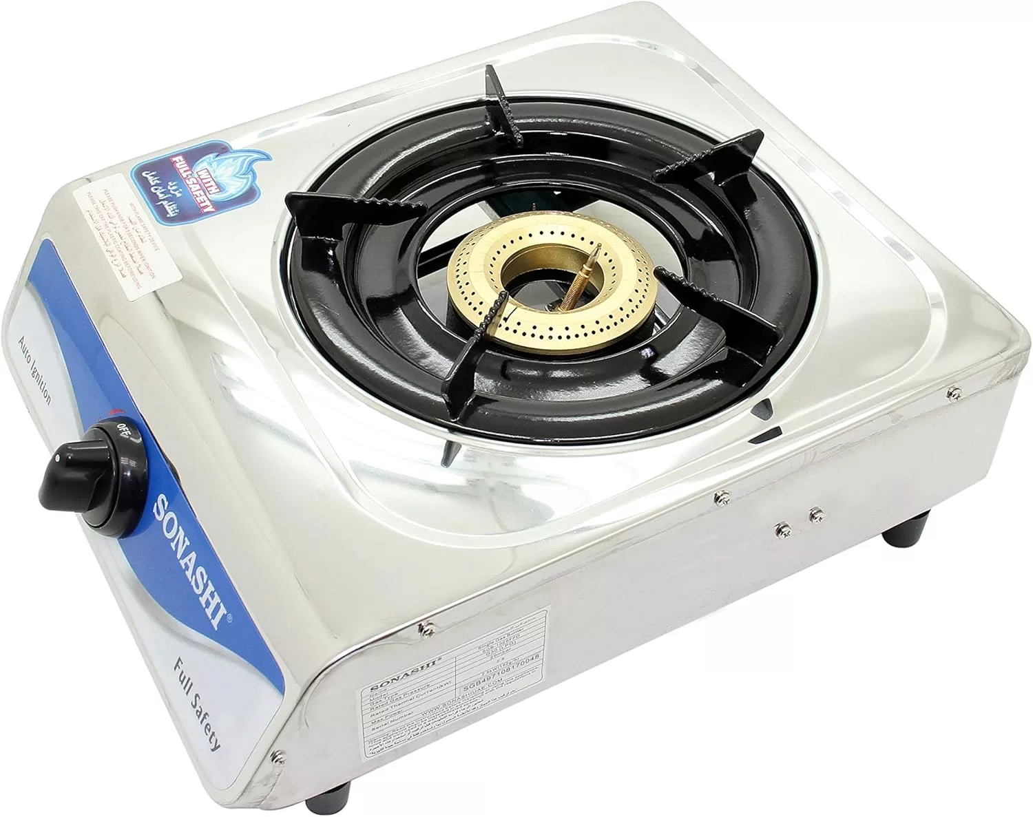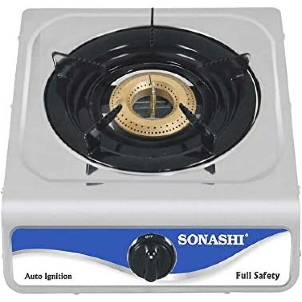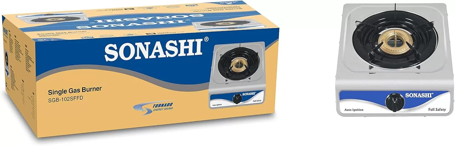 Key Features: Portable Stove: This Sonashi Single Gas Stove is easy to install and convenient to use. It is a portable stove, can easily fit in a backpack and is perfect for any camping trip. Piezo Ignition: This portable gas stove is designed with a Piezo Ignition. This makes the stove super easy to start and to adjust the heat output as it does not need a lighter. Quality material: This steel gas stove has a sturdy and durable cast iron burner head. It has a generous surface area that suits all sizes of pots, pans and skillets. Versatile Product: This single burner can be used in multiple settings. It is ideal for garden, patio, camping, picnic, travelling and other outdoor activities. Specifications: The Sonashi Single burner stove is made out of stainless steel and has a cast iron burner head. It also has an Indian Brass Burner Cap and uses LPG as a fuel.