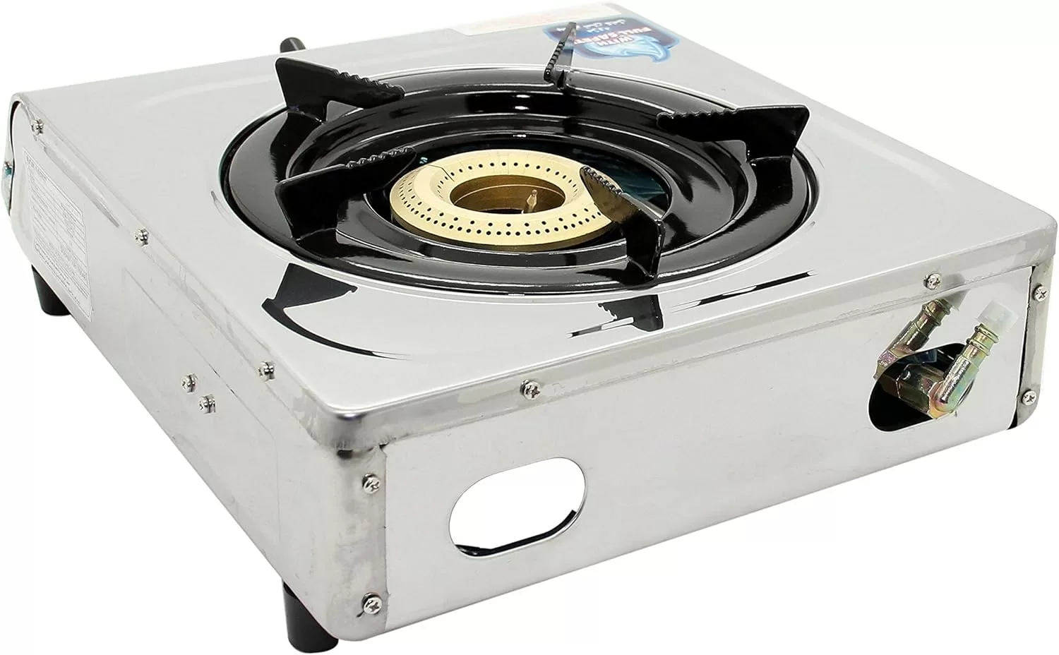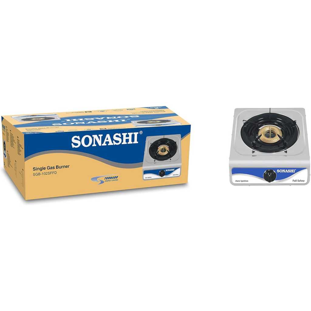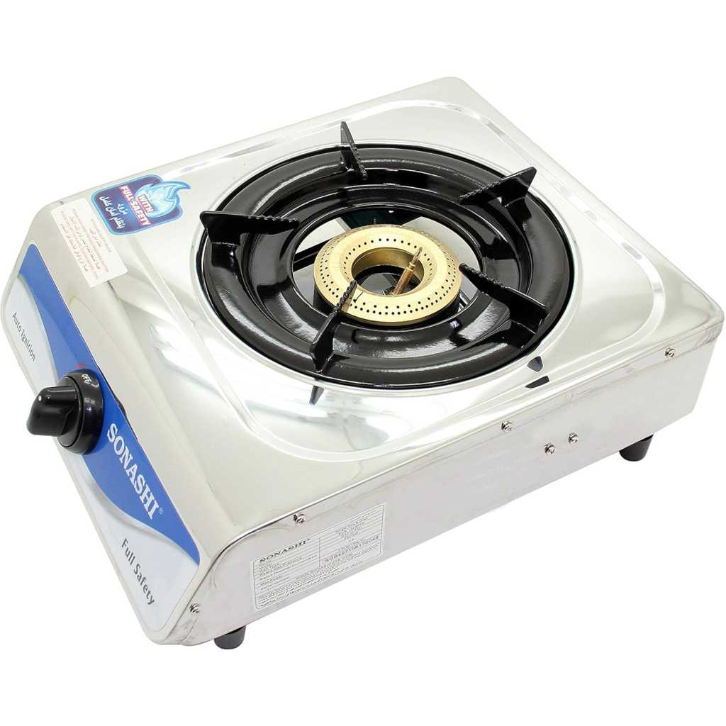 Key Features: Portable Stove: This Sonashi Single Gas Stove is easy to install and convenient to use. It is a portable stove, can easily fit in a backpack and is perfect for any camping trip. Piezo Ignition: This portable gas stove is designed with a Piezo Ignition. This makes the stove super easy to start and to adjust the heat output as it does not need a lighter. Quality material: This steel gas stove has a sturdy and durable cast iron burner head. It has a generous surface area that suits all sizes of pots, pans and skillets. Versatile Product: This single burner can be used in multiple settings. It is ideal for garden, patio, camping, picnic, travelling and other outdoor activities. Specifications: The Sonashi Single burner stove is made out of stainless steel and has a cast iron burner head. It also has an Indian Brass Burner Cap and uses LPG as a fuel.