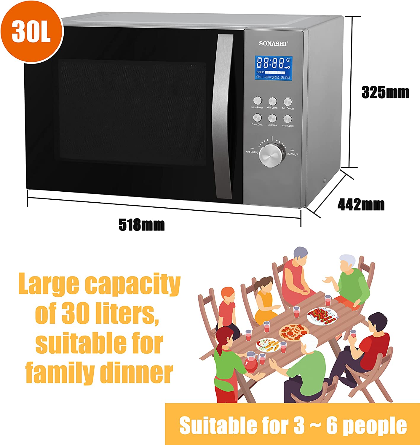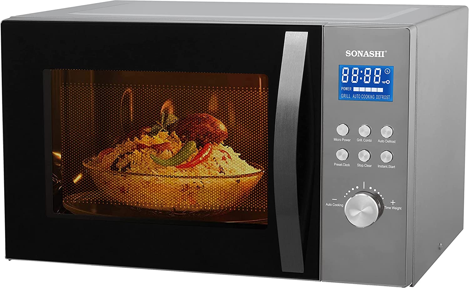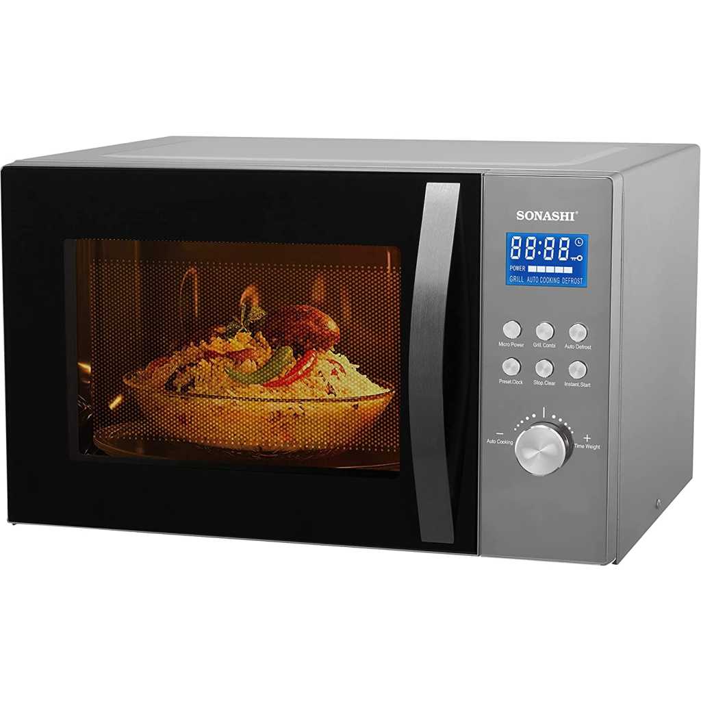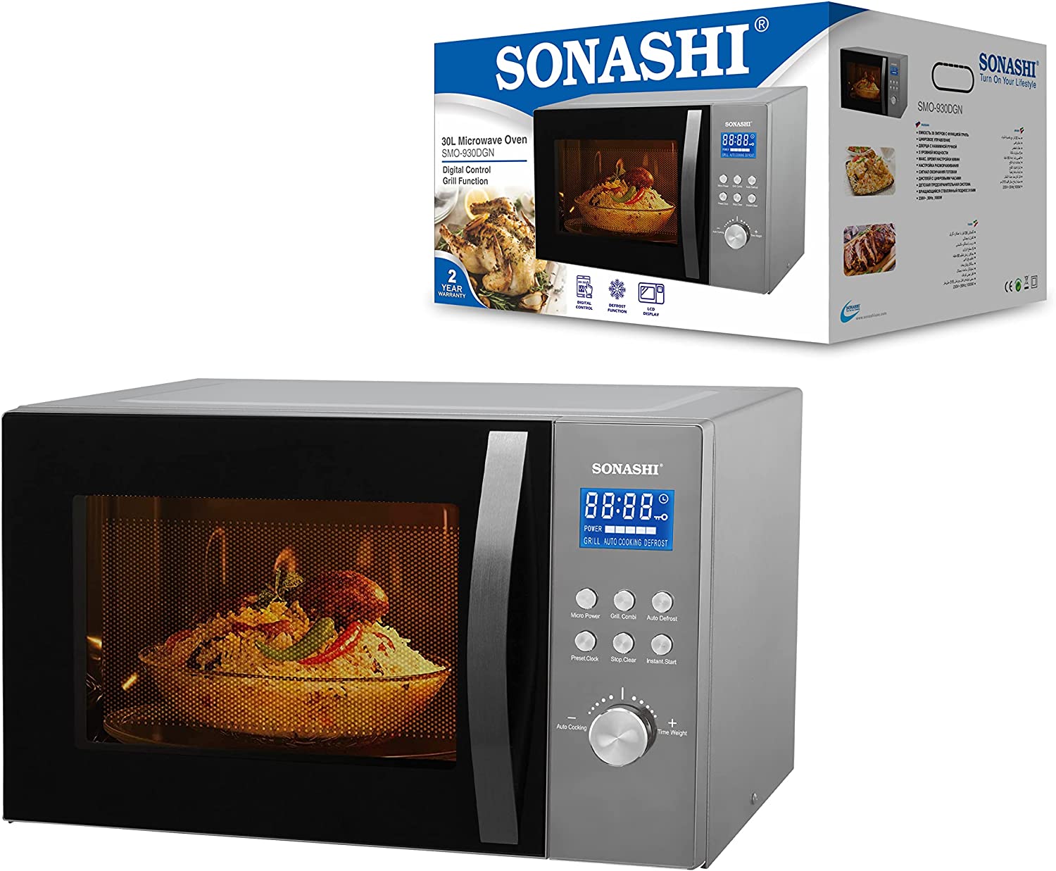Sonashi SMO-930DGN 30 Microwave Oven W/ Grill Function, Turntable Glass Tray, Adjustable Temperature, Cooking End Signal, Pull Handle Door, Timer | Home Appliances.