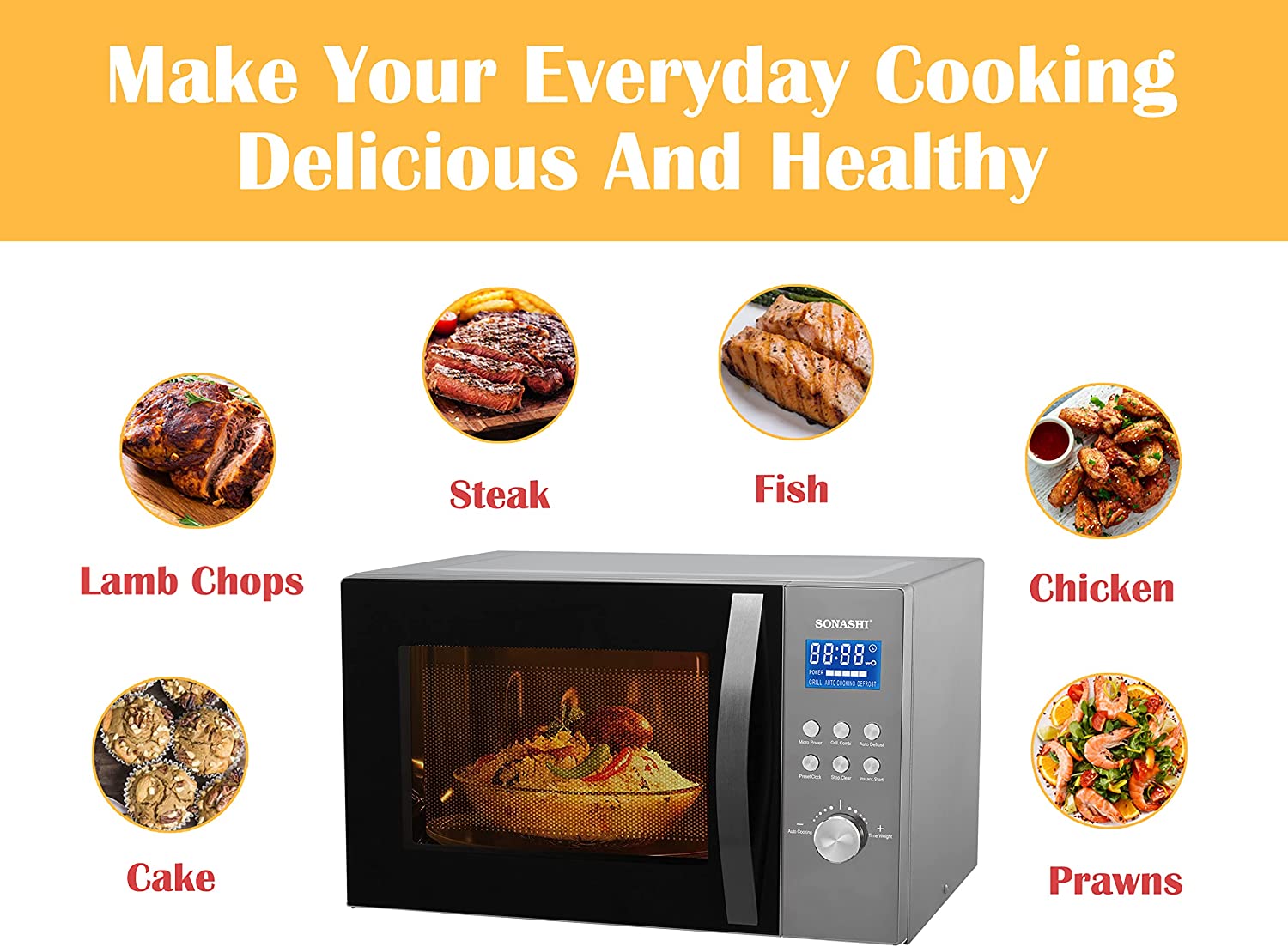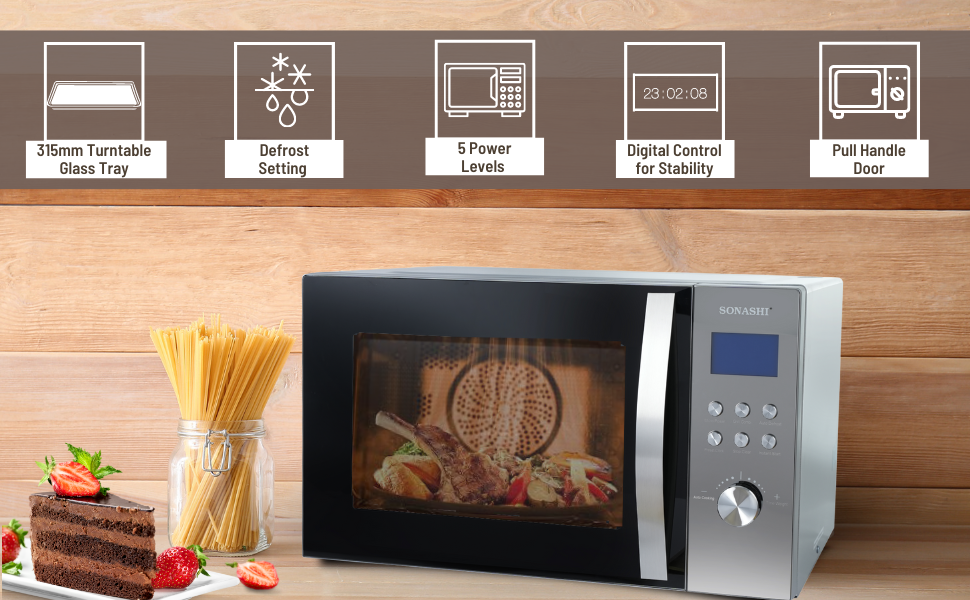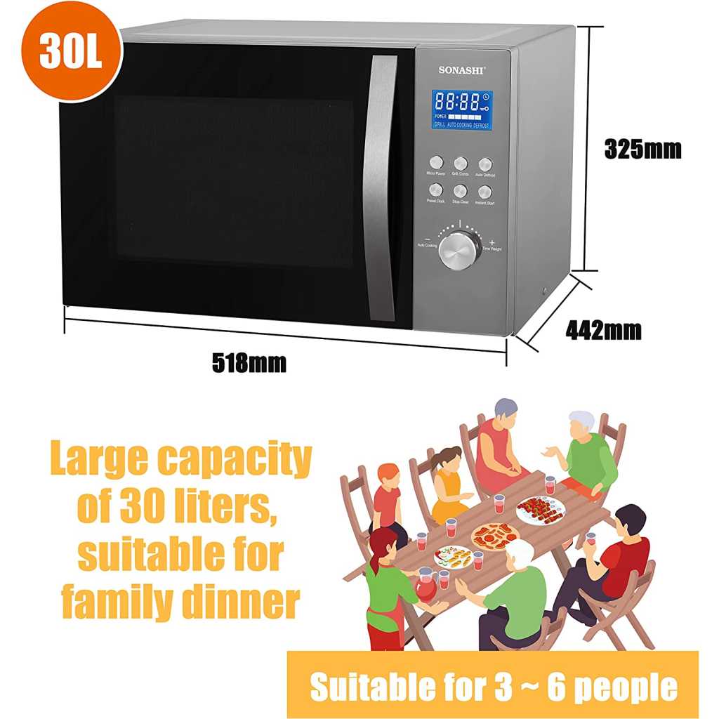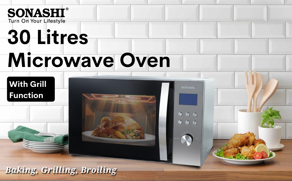 Sonashi SMO-930DGN 30 Microwave Oven W/ Grill Function, Turntable Glass Tray, Adjustable Temperature, Cooking End Signal, Pull Handle Door, Timer | Home Appliances.
