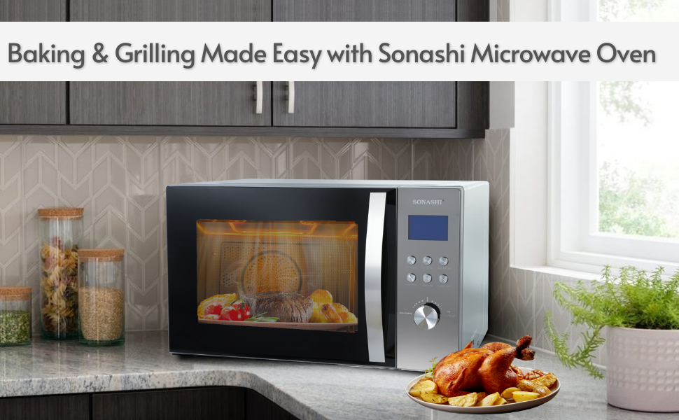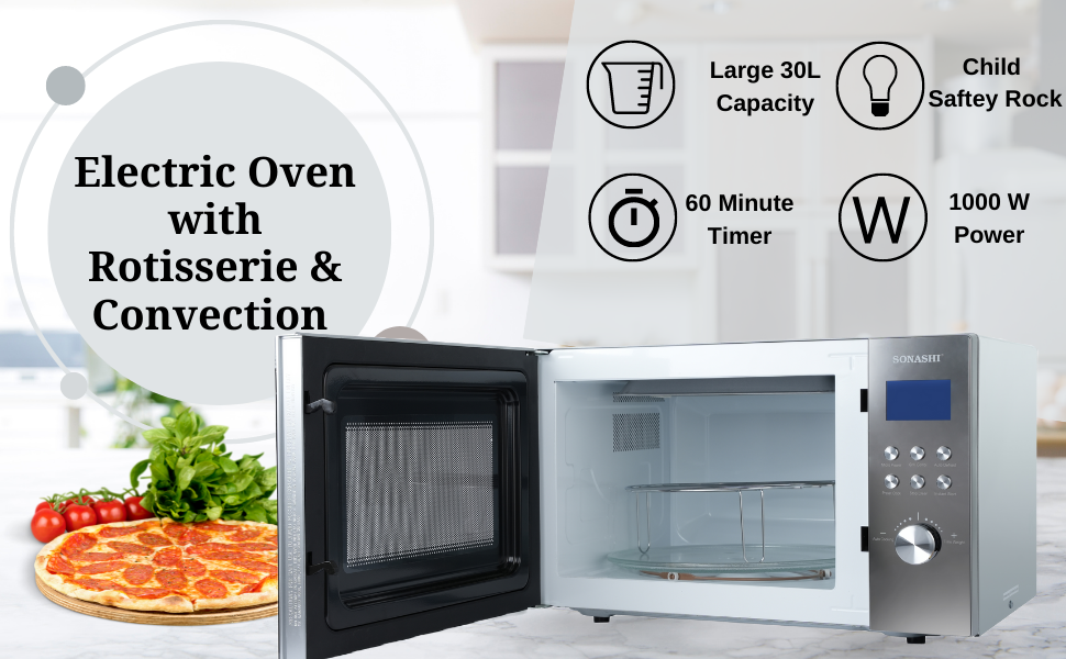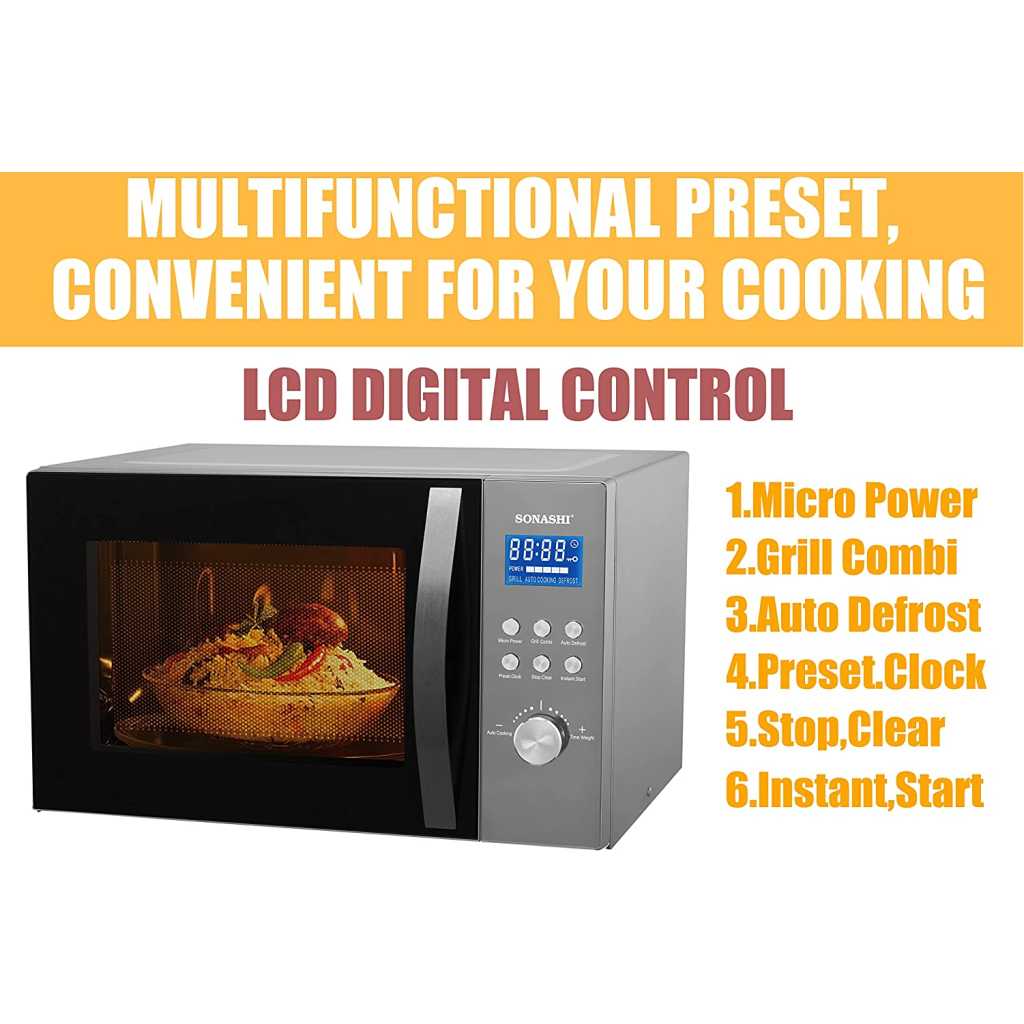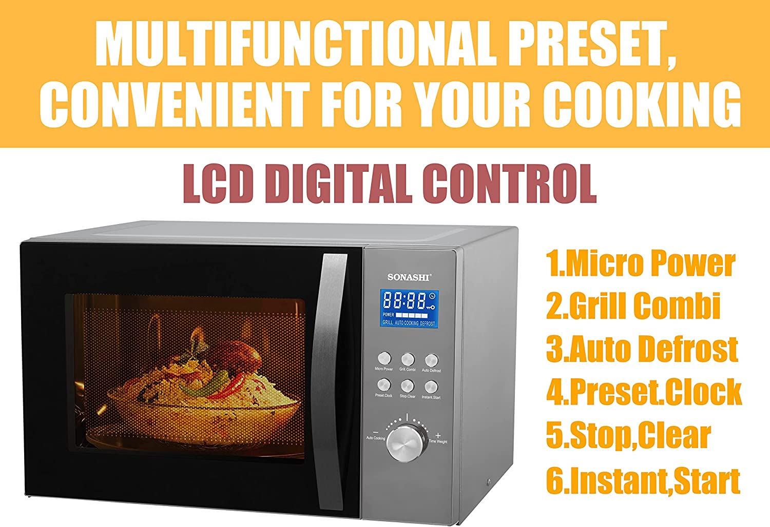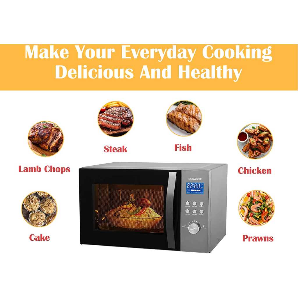 Sonashi SMO-930DGN 30 Microwave Oven W/ Grill Function, Turntable Glass Tray, Adjustable Temperature, Cooking End Signal, Pull Handle Door, Timer | Home Appliances.