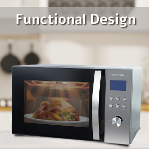 Key Features: Sonashi SMO-930DGN 30 Microwave Oven W/ Grill Function, Turntable Glass Tray, Adjustable Temperature, Cooking End Signal, Pull Handle Door, Timer | Home Appliances. Accommodating Design: This digital microwave oven features a black-colored exterior with digital controls and a digital clock display that makes cooking hassle-free. You can cook variant recipes in this oven. Robust Oven: This oven boasts high-quality construction with a turntable glass tray that delivers uniform heat to the food. The premium-quality pull-handle door is convenient to open and close. Multi-Purpose Oven: This electric oven offers a defrost setting and cooking end signal that protects the food from burning. It has six power levels to help you cook multiple variant recipes without any trouble. Compelling Performance: This fully accessorized microwave oven includes a turntable glass tray so place your food from and in the oven easily. The compact size of the oven makes it perfect for areas with space restrictions. It has child safety lock for added protection. Product Specifications: This 30-liter microwave oven helps adjust the 60 minutes timer so you don’t have to invest your time in the kitchen until the food is ready. The timer will ring when the food gets ready. This stainless-steel oven consumes 1000W, 230V~, 50Hz to operate.