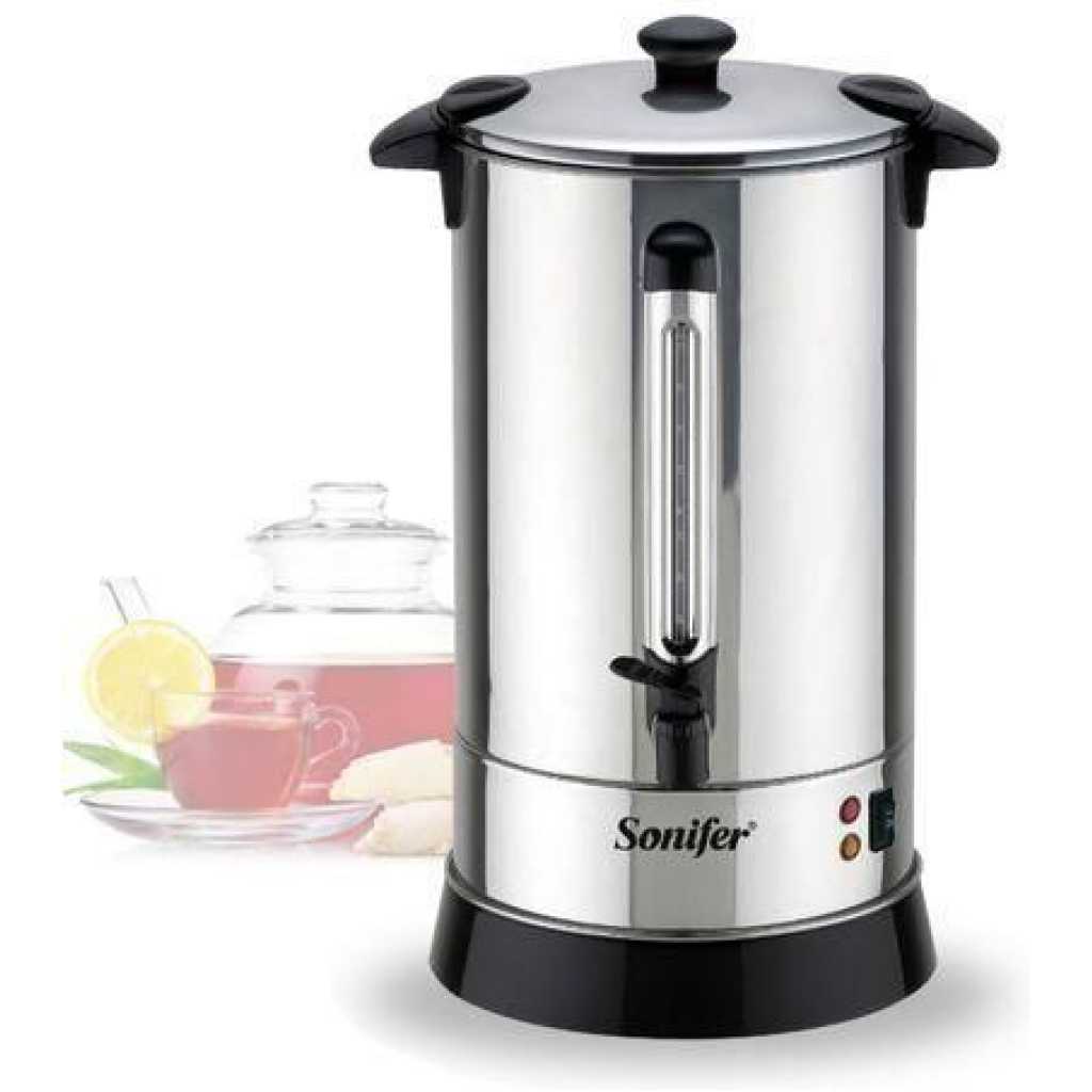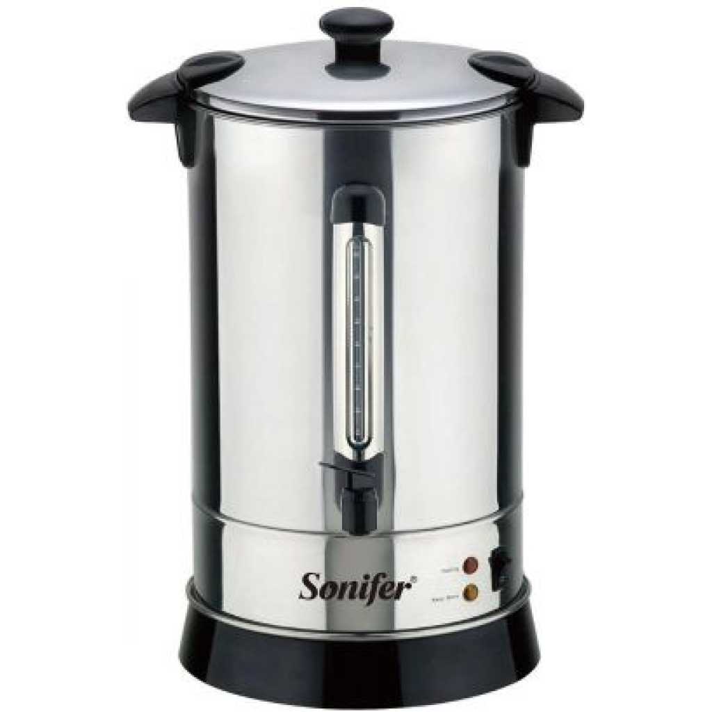 This is a stainless steel water boiler and warmer.It is a perfect tool for you to boil water and warm drinks, such as water,juice, wine and champagne. 2500w superpower will make the warming process more high-efficient and take short time. It is easy and convenient to adjust the temperature with the knob, and the temperature range is 30 degrees to 110 degrees. The faucet is easy to reach and operate from which you can get your drinks. Countertop designand cover lid also effectively avoid kids touching. What a convenient and multipurpose water and wine warmer! It is perfectly suitable for your kitchen or beverageshop! Model Number : SF-2109 Type : Electric Kettle Capacity : 20 Liter Material : Stainless Steel Brand : Sonifer Stainless steel body – Variable temperature control with a maximum temperature of 110oC Automatic switch off Built-in dry boil protection External water gauge Non-drip dispensing tap Pilot light indicator Overheat protection Technical Data Power: 2500W Voltage: AC 220-240V Frequency: 50Hz Key Features: 15 Liters capacity Stainless steel body Variable temperature control with a maximum temperature of 110oC Automatic switch off Built-in dry boil protection External water gauge Non-drip dispensing tap Pilot light indicator Overheat protection