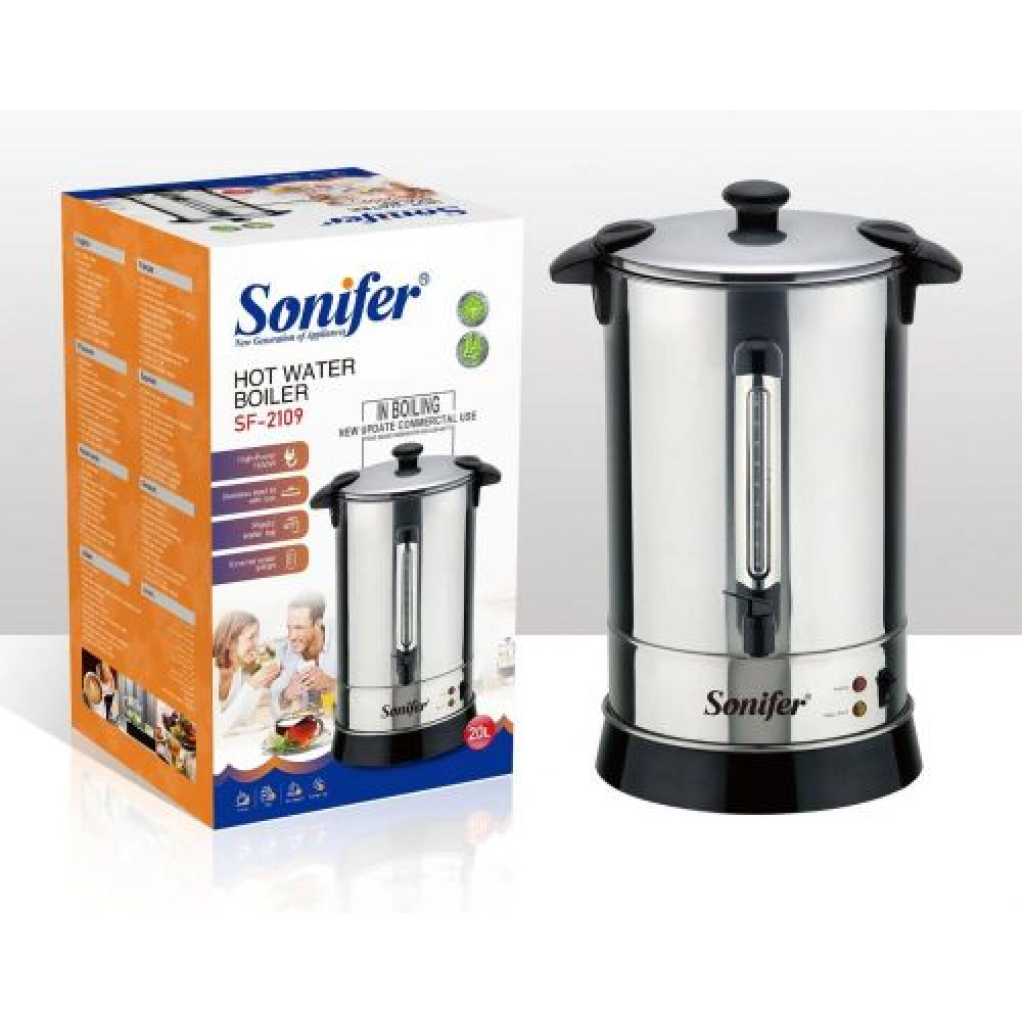 20 Liters capacity Stainless steel body Variable temperature control with a maximum temperature of 110oC Automatic switch off Built-in dry boil protection External water gauge Non-drip dispensing tap Pilot light indicator Overheat protection Key Features: 20 Liters capacity Stainless steel body Variable temperature control with a maximum temperature of 110oC Automatic switch off Built-in dry boil protection External water gauge Non-drip dispensing tap Pilot light indicator Overheat protection