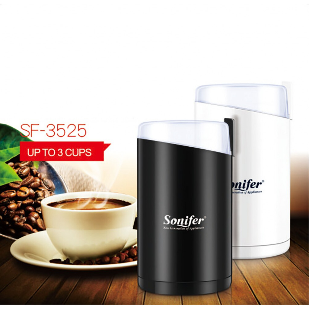 Sonifer 220V Mini Electric Coffee Bean Grinder Grinder Herb Nuts SF-3525 - Black/White