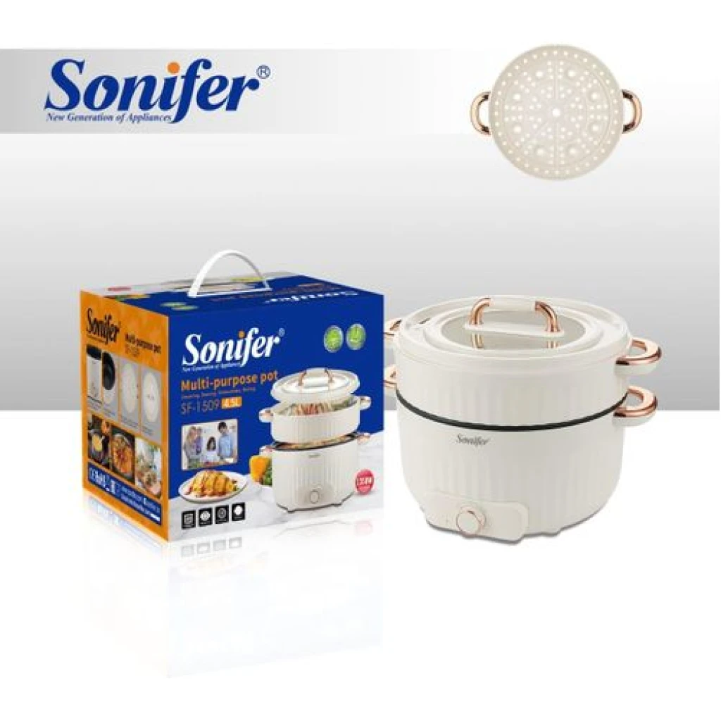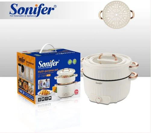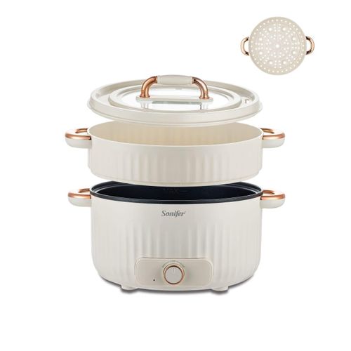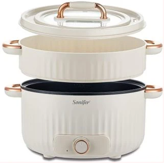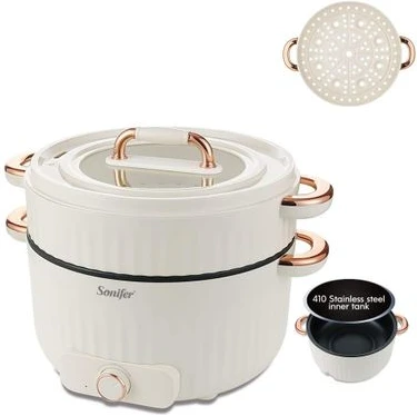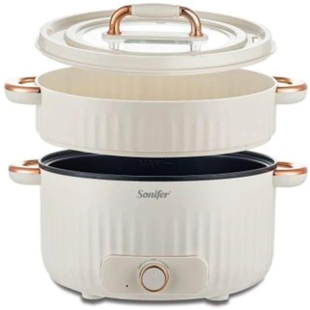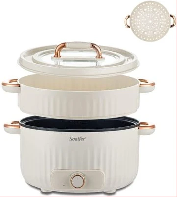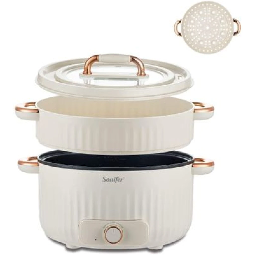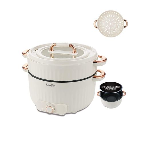 Sonifer 4.5L Home Use Multi-purpose Pot Stainless Steel Inner Steaming Stewing Shabushabu Boiling Electric Hot Pot Slow Mini Kitchen Electric cooker Boiler Steamer- Multicolor