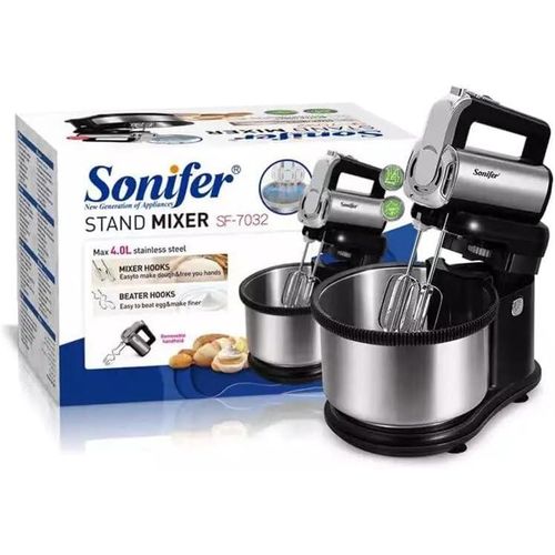 Key Features: Even if you are not a kitchen pro, you expect a lot from your kitchen appliances. The Sonifer stand mix is the best kitchen machine for beginners, sturdy and compact, perfected for everyday family use and basic preparation. Turbo function with safety device: the turbo functioning onlyworks when the appliance is function Eject button with safety device: blocked while the applianceis operating Tilt-up head allows easy removable of bowl. 4.0 Liters stainless steel bowl 500 Watt Power 5 speeds Left-Right shaking mixing head 220-240V, 50/60Hz, 500W portable mixer which can be used as a hand mixer