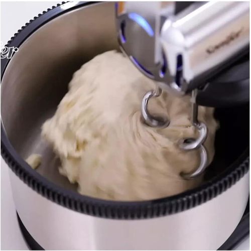 2 in 1 Powerful Mixer, Tilt-up Head Design: One mixer meets your two needs. This mixer can be detached from the base as a lightweight hand mixer or attached as an electric stand mixer for extra mixing versatility. Tilt-up head design to add ingredients and change attachments easily & quickly, and reduce buildup on the sides of the bowl. 5 Speeds Optional, Rotating Automatically Base: This portable, compact mixer with a 500 Watt motor and 5 different speeds options ranging from low to high to whip, with precise control at each level. The base is rotating automatically, to whip, beat or knead more even and complete mixing.Big Capacity Stainless Steel Bowl & Detachable: Our 4 liters stainless steel bowl offers enough capacity to mix, helping you without making a mess and against messy drips, drops and spills. Detachable bowl, more easier to add ingredients, wash and store. Perfect Kitchen Accessory Mixer: This stand mixer can accomplish almost any task or recipe. Perfect for sweet or savory, frosting, meringue, creamy dressings, doughs, baked goods and more, which is a great helper. Versatile Attachments: Kitchen mixer set includes two beaters, two dough hooks, to blend, beat, whip, knead, mix eggs or cream. All attachments are dishwasher-safe. Even if you are not a kitchen pro, you expect a lot from your kitchen appliances. The Sonifer stand mix is the best kitchen machine for beginners, sturdy and compact, perfected for everyday family use and basic preparation. Turbo function with safety device: the turbo functioning onlyworks when the appliance is function Eject button with safety device: blocked while the applianceis operating Tilt-up head allows easy removable of bowl. 4.0 Liters stainless steel bowl 500 Watt Power 5 speeds Left-Right shaking mixing head 220-240V, 50/60Hz, 500W portable mixer which can be used as a hand mixer