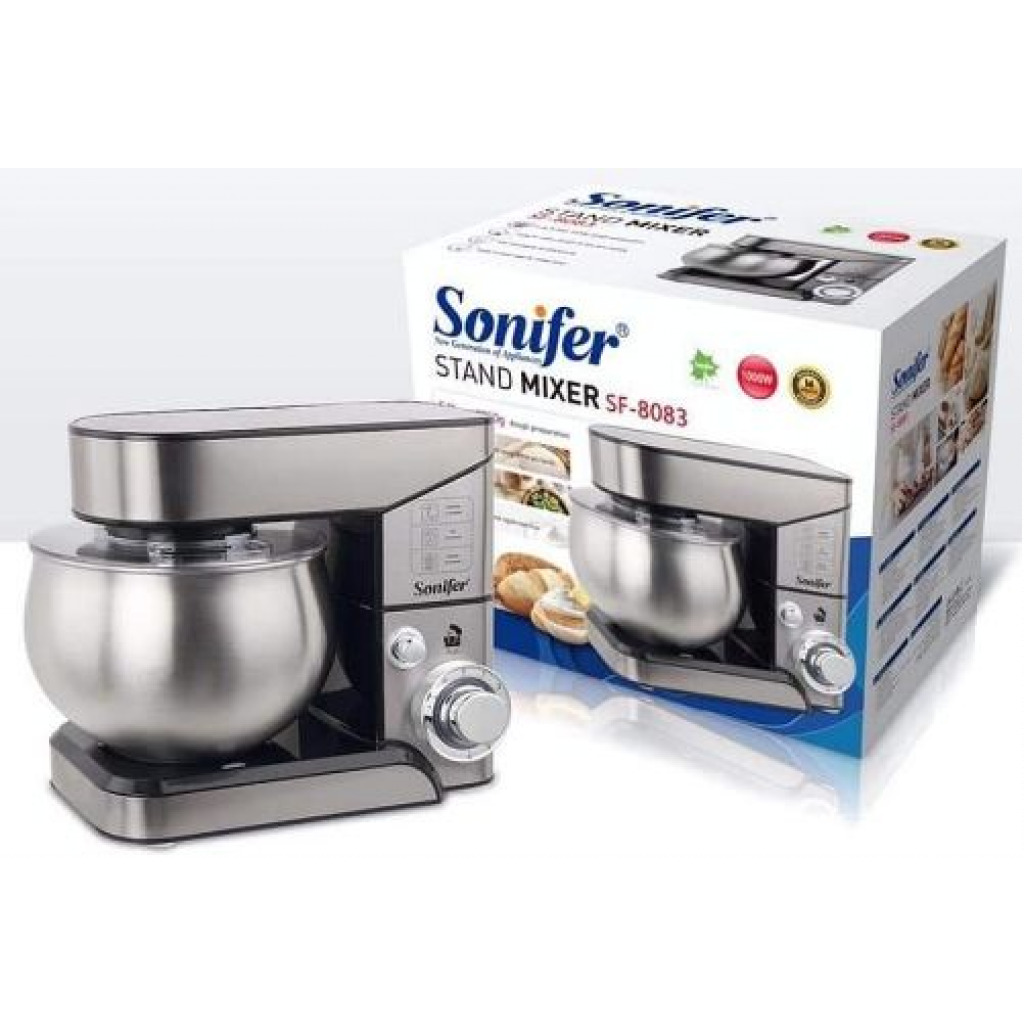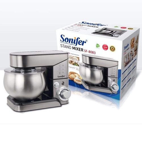 The Sonifer SF-8083 mixer made of durable Steel with a stand and a metal bowl is the perfect assistant in your kitchen. The stylish, reliable, practical model of the desktop mixer will help you in preparing culinary masterpieces. With a sonifer mixer, it’s easy and easy to cook mashed potatoes or beat eggs for dessert, knead the dough or mix the minced meat with special whisks. Cook with pleasure thanks to a functional mixer in an elegant design. The mixer is located on a stand and has a convenient metal bowl with a volume of 10 liters. Not whimsical at work. The compact size does not take up much space in the kitchen. It is simple and convenient to work with such a mixer. Specifications Manufacturer: sonifer Model: SF-8083 Mixer type: Stationary Number of speeds: 6 Case material: Steel Volume of the bowl: 5L Material of the bowl: metal Protective lid on the bowl : Yes – Voltage, V: 220 Metal Power, W: 1000 Frequency, Hz: 50 Included: removable bowl, 3 nozzles: hook for kneading yeast dough, spatula for kneading liquid dough and mashed potatoes, whisk for whipping