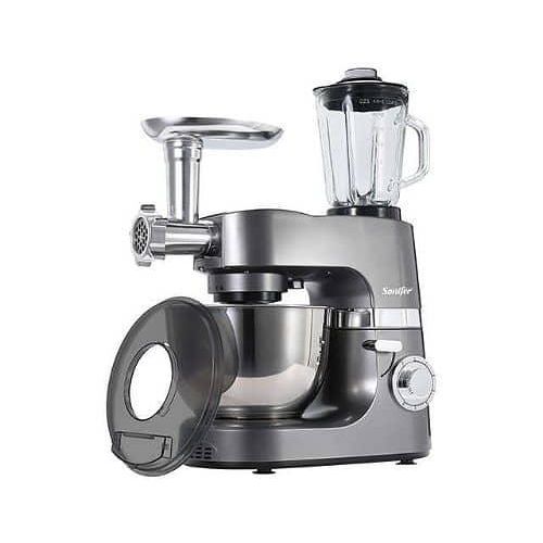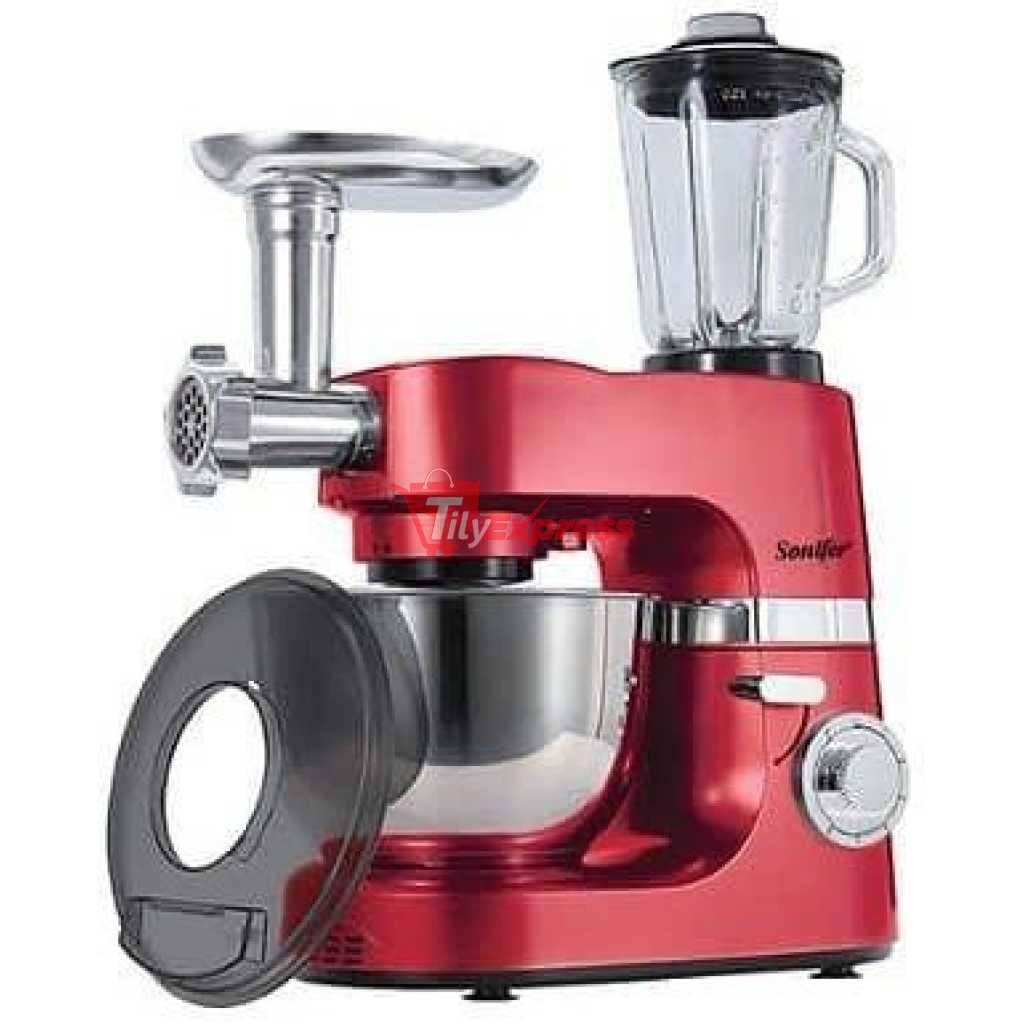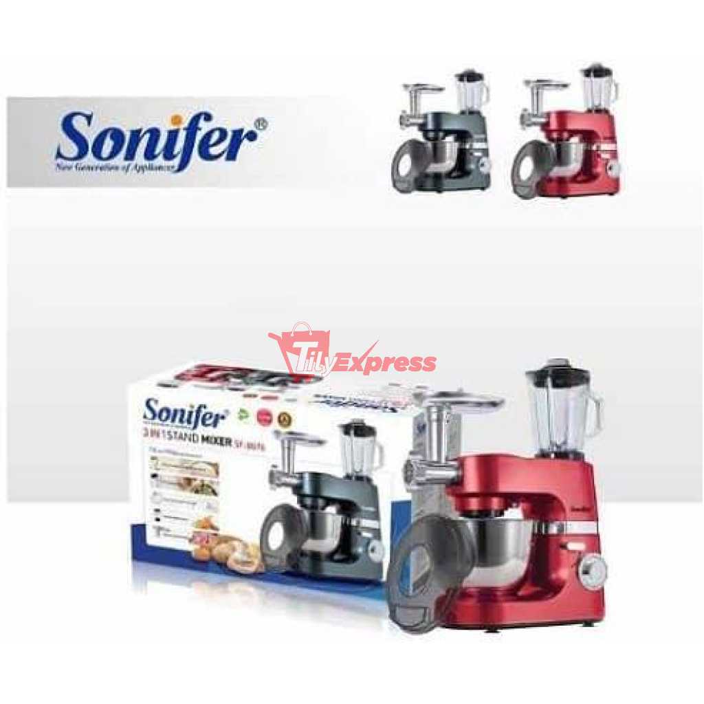 Sonifer 7 L 6 Speed 3 in 1 Food Mixer Professional Commercial Blender Stand Mixer Meat Grinder For Home- Silver It is easy to use for making pastries and desserts. In addition, mincing meat and squeezing juice can be done At the same time POWERFUL MOTOR & PULSE VARIABLE SPEED CONTROL -Equipped with and powerful motor and Handy speed control, together with a pulse function, The kitchen food mixer can easily implement multiple functions. 6-speed control Features profit you on different occasions. 1-3 position: kneading dough; 2-4 position: mixing butter; 5-6 position: whisking eggs. THREE ACCESSORIES TO ACHIEVE MULTIPURPOSE MIXING-Featuring 3 different kinds of attachments, 2 beaters, a dough hook, and eggs whisk, this stand mixer is easy to use to make cakes, bread, cookies, pastry, muffins, and waffles. Other than that, the splash guard can prevent ingredient spillage. Rubber pads at the bottom provide stability. HIGH-QUALITY MATERIAL-On the one hand, the quart mixing bowl is made of 304 stainless steel. Compared to normal stainless steel, 304 stainless steel has better high temperature and corrosion resistance. On the other hand, the main body of our electric mixer is made of ABS plastic, which offers you with long-term service. HUMANIZED DESIGN-a. The motor will stop running once the head of our stand mixer is raised, which ensures safety. b. The design of the tilt-head is convenient for not only adding ingredients but also installing or removing the mixing bowl and attachments. c. qt capacity bowl is enough to mix dough for 9 dozen cookies or 4 loaves of bread in a single batch. Key Features: Sonifer 7 L 6 Speed 3 in 1 Food Mixer Professional Commercial Blender Stand Mixer Meat Grinder For Home- Silver 7 Litres detachable stainless steel mixing bowl speed control with pulse function Planetary mixing action Stainless steel whisk for cream and eggs Aluminum beater for cake batters Aluminum dough hook for kneading.