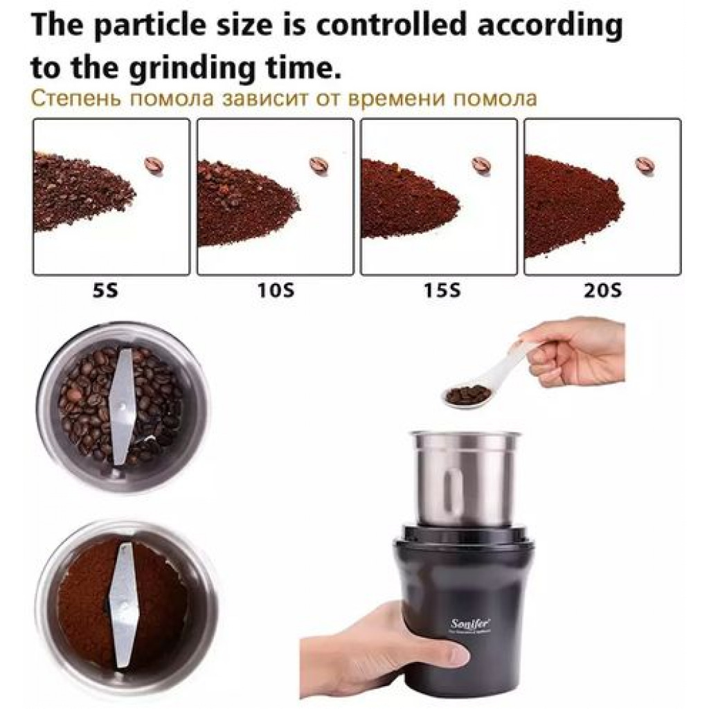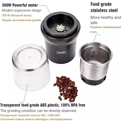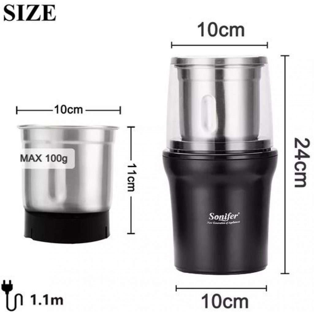 Sonifer SF-3527 Coffee Grinder is this quality tested coffee grinder, with Inox Stell inside allowing this machine to produce very good grinding results. And also the lasting longevity of the engine. This machine can brew up to 3 cups of coffee. We are not a store that has cheap (an) products, but products that are “Value For Money” with all the services you will get later Stainless Steel :We insist on using high quality stainless steel : 1. Food grade stainless steel is healthier. 2. Stronger corrosion resistance, far from rust. 3. More sturdy and durable, say goodbye to frequent grinder replacement.