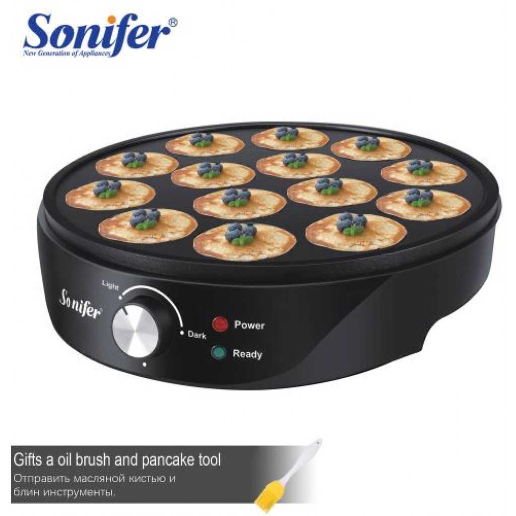 The sonifer pancake maker bakes 14 delicious mini pancakes at once. It is fun for every festive occasion. The high quality baking plate with non-stick coating is perfect for baking the mini pancakes in only just a few minutes. The pancake maker has a few holes where you can pour the pancake mix in, just the right size. The pancake maker has a ready-to-use light and power light. The non-slip feet keep it steady and safe. Easy to use and also easy to clean.