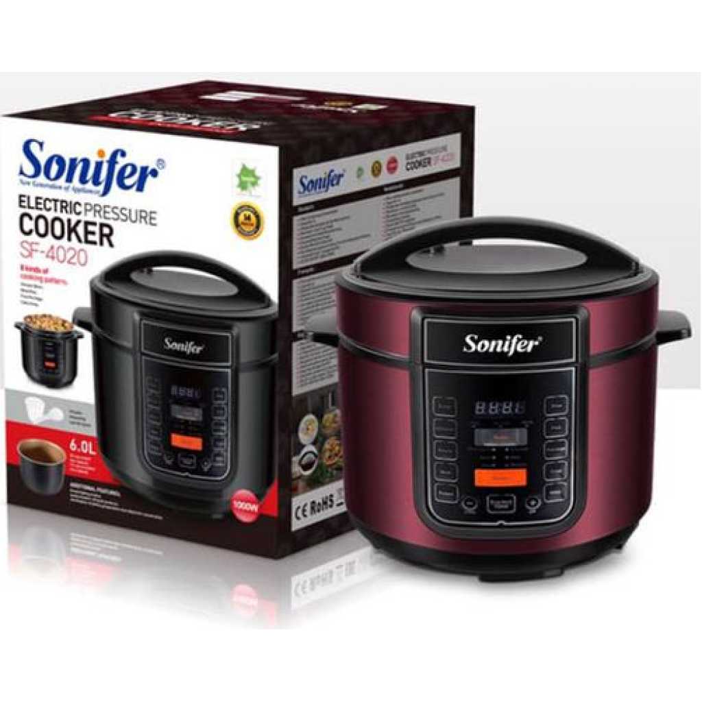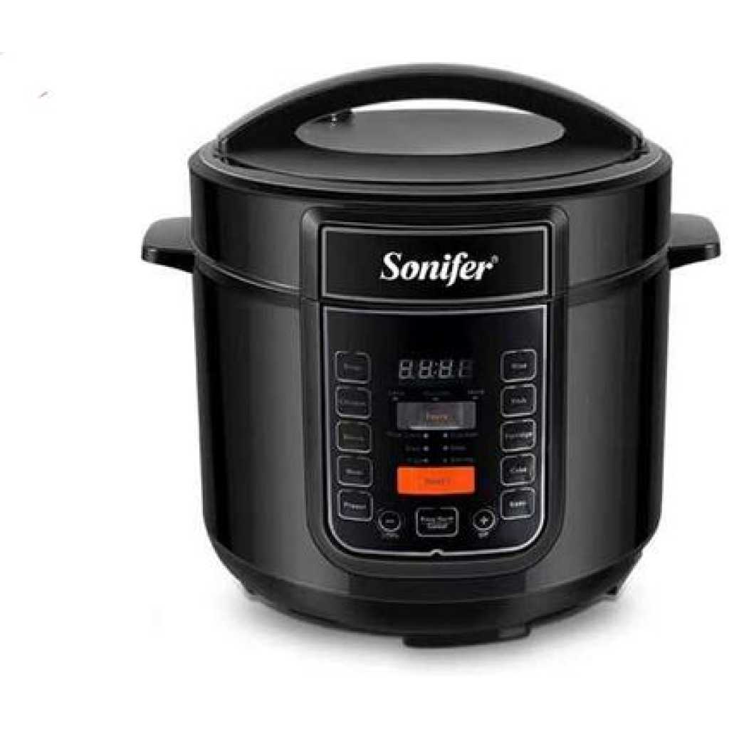 Key Features: Sonifer Multi-Function 6L Electric Pressure Cooker Rice Cooker Steamer – Black. Automatic pressure cooker + rice cooker + stew pot Six default cooking modes: porridge, rice, dessert, beans, fish, meat Timing control and heat preservation function, open/close lid safety Menu selector, cool touch body Energy-efficient design Non-removable inner cylinder Capacity: 6L AC 220-240V 50/60Hz 1000W