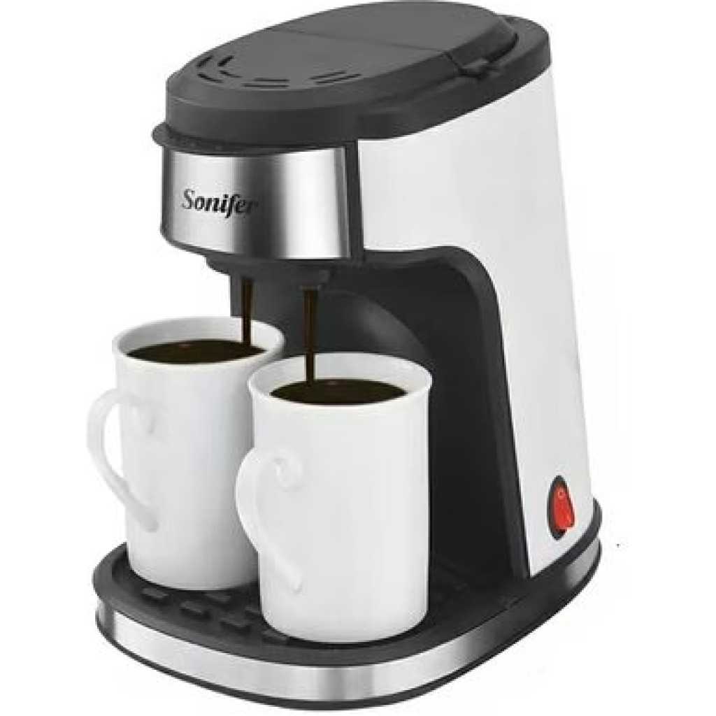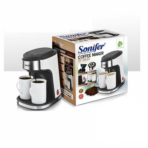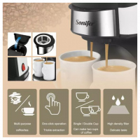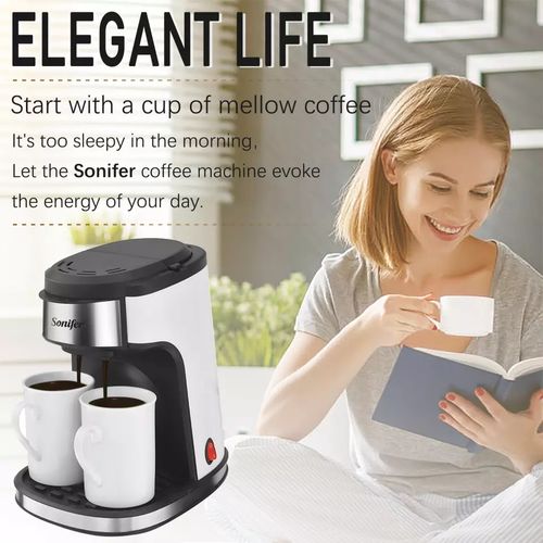 Sonifer Coffee Maker prepares all types of coffee including espresso, cafe latte, and cappuccino. This all in one coffee maker has a steam nozzle to add froth.Make your coffee breaks more exciting with the Sonifer Coffee Maker. With its steam nozzle, you can also add froth to your coffee and make it more appealing. All the more, you can make your coffee just the way you like, be it cappuccino, espresso, or cafe latte. The coffee maker features an automatic steam pressure pump of 15 bar and a transparent removable water tank of 1.6L. The warm tray on its top keeps your coffee hot when you are preparing more than just a few cups for your guests or friends. Enjoy sipping your delicious coffee that will refresh you and keep you awake. Key Features: For 2 cups of coffee (approx. 240 mI) Includes two porcelain cups On/off switch with light indicator Removable and washable filter and filter holder Non-slip feet Includes coffee plastic spoon AC220-240V 50/60Hz 450W
