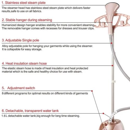 Sonifer Electric Garment Steamer 1.6L This steam iron will quickly heat up in 30 seconds and provide a powerful steam output, and a high steam rate can remove wrinkles from clothes easily and make your clothes smooth and well-pressed, showing your elegance. With 3 steam settings, you can adjust the steam output according to your needs by rotating the knob of steamer, and this iron for clothes is perfect to iron cotton, linen, silk, wool, nylon, polyester, T-shirts, blouses, jeans, and dresses. Anti-drip system prevents water leakage at any temperature setting to eliminate unwanted drips. PRODUCT DESCRIPTION: Rated power: 1800W Water tank capacity: 1.6L Wire length: 1.5m Voltage: 220-240V Specifications Voltage: 220-240V Frequency: 50/60Hz 1700W Power 1.6L Capacity PP & PC Alumni Material Voltage: 220-240V Frequency: 50/60Hz 1800W Power 1.6L Capacity PP & PC Alumni Material 3*0.75 Square Power Cord .5m Wire Length Temperature control 180 Degree Maximum Key Features: Voltage: 220-240V Frequency: 50/60Hz 1700W Power 1.6L Capacity PP & PC Alumni Material Voltage: 220-240V Frequency: 50/60Hz 1800W Power 1.6L Capacity PP & PC Alumni Material 3*0.75 Square Power Cord .5m Wire Length Temperature control 180 Degree Maximum