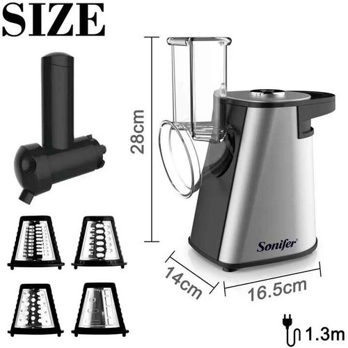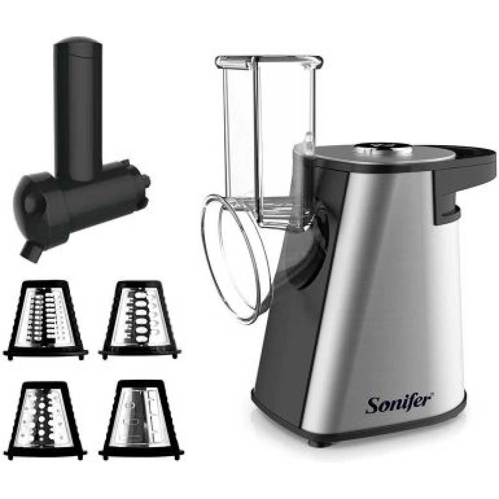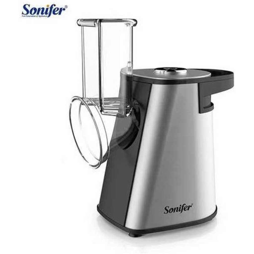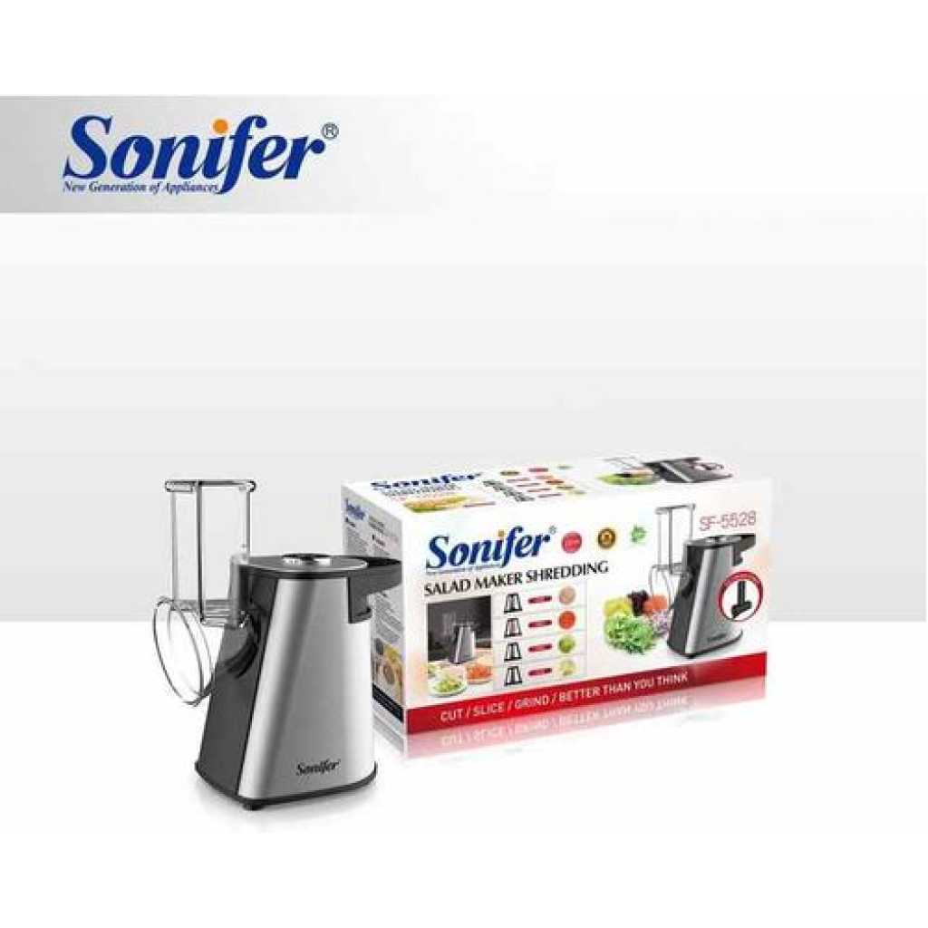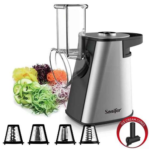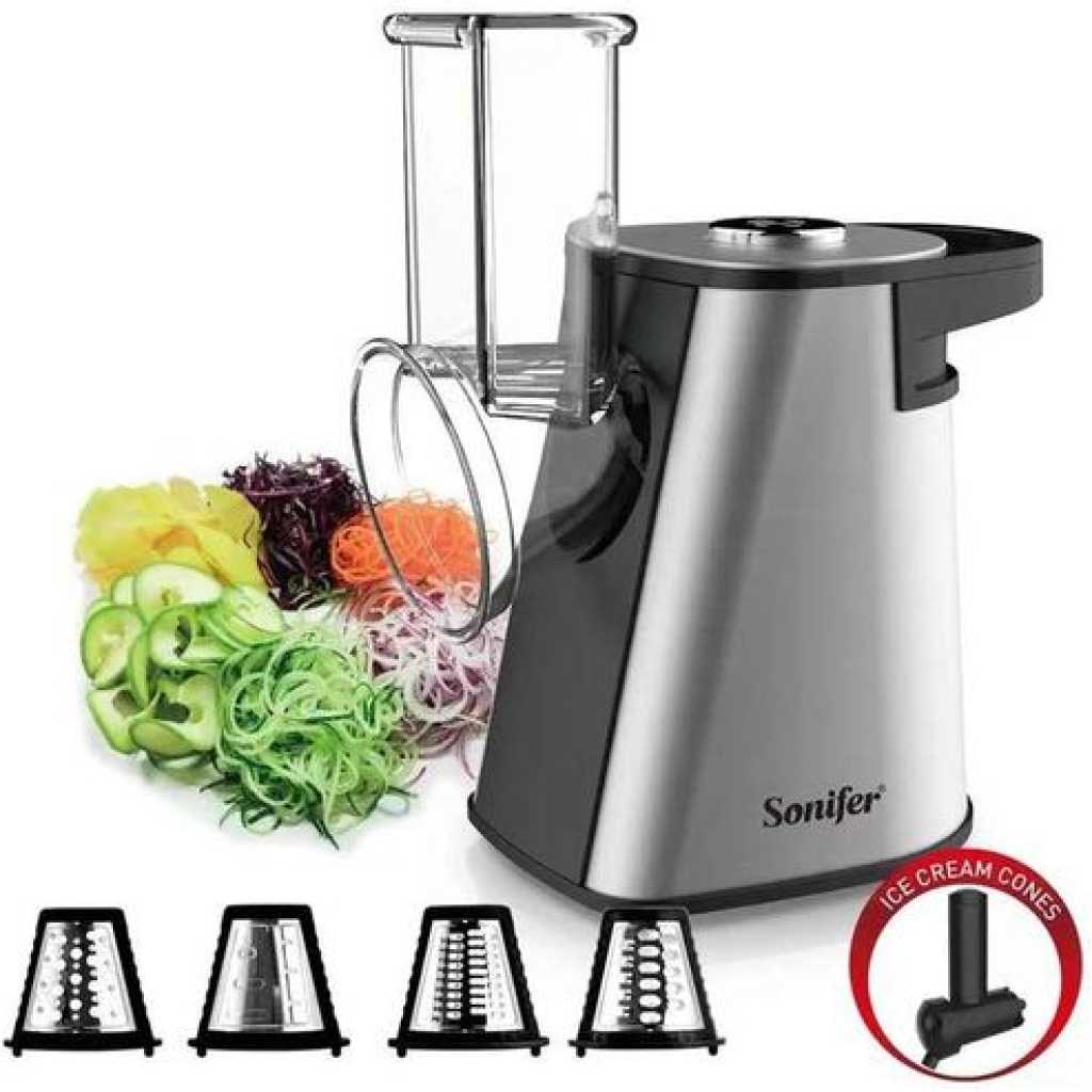 Key Features: Sonifer Stainless Steel Multifunctional Fruit Vegetable Salad Shredder Slicer Potato Masher Maker Machine- Silver. Model: SF-5528 Power: 200W Power supply: 220V Anti-slip rubber feet Noiseless while operation Fruit/vegetable shredding, slicing, and potato accessories, multifunctional with mashing etcWith ice cream function for frozen fruits Noiseless while operation Optional fruit dessert All detachable parts for easy cleaning Stainless steel housing