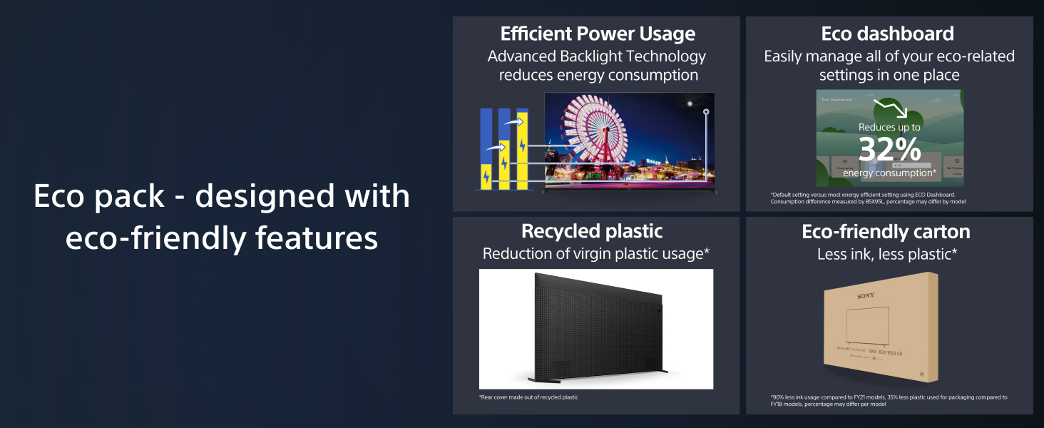 Sony BRAVIA 65 – Inch | KD-65X85L | Full Array LED | 4K HDR UHD | Google TV | ECO PACK | BRAVIA CORE | Seamless Edge Design | 2023 Model. From the manufacturer Key Features: HIGH CONTRAST REALISM: Bring a slice of the stadium into your living room, with our Full Array LED display breathing brightness and contrast into every scene and making everything feel so real, Our X1 Processor is the power behind these bright pictures, with content analysed in real-time to reveal more detail and texture in every scene DOLBY ATMOS SOUND: Dolby Atmos is the immersive sound to match, giving every sport you watch and every commentary you listen to the surround sound treatment, whilst our unique X-Balanced Speaker units maximise sound quality DESIGN: Modern and minimalist to suit any interior, with a Seamless Edge Bezel to keep your focus on what’s important – the picture, The two-way, black, slim wedge TV stand offers ultimate convenience, designed to fit both wide and narrow furniture surfaces GAMING FEATURES: With up to 120 frames per second (4K/120fps) for near instant on-screen action, the X85L is great for gaming too, Auto Low Latency Mode in HDMI 2,1 delivers smooth, responsive gameplay, and Auto HDR Tone Mapping reveals crucial details in the darkest and brightest parts of the screen, There’s even a dedicated Gaming Menu that includes our brand-new Crosshair and Custom Screen features – they could be the secret to your next win APPS AND FEATURES: Access 700,000+ movies and TV episodes from across your streaming services on this Google TV, with everything organised to suit your personal interests, You can even set aside your remote and go hands-free with Voice Search