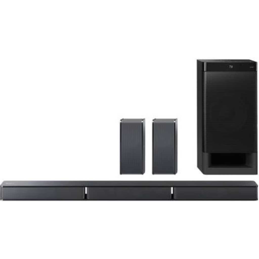 Sony HT-RT3 – 5.1 Channel Sound Bar Home Cinema System with Bluetooth Home Theatre System – Black Immerse yourself deeper in every movie soundtrack with 5.1 channels of real surround sound. Wired rear speakers and an external subwoofer work with a 3ch sound bar to deliver deep, room-filling sound, while the S-Master digital amp minimises distortion. You can easily enjoy all your music and movies with USB video 1 and audio playback.Fill the room with 5.1ch real surround soundUSB audio playback Easy Bluetooth® Connectivity With NFC™ One-Touch Sony HTRT3 5.1-Channel Wired Home Theater Sound Bar with Subwoofer and Bluetooth Technology: 600W total power, two 65W front speakers, one 170W center channel speaker, two 65W surround and one 170W subwoofer deliver powerful sound to complement movies and enliven music Built-in surround sound decoders include Dolby Digital/DTS, Dolby Dual Mono and LPCM for an immersive soundscape Plays back a variety of video and audio formats, including Blu-ray Disc, DVD, DVD+R, DVD+RW, DVD-R, DVD-RW, CD, CD-R, CD-RW, CD-DA, WMA, MP3, AAC, LPCM and MPEG for enjoying your favorite media Can connect by Bluetooth 1 x HDMI, 1 x Optical Digital Audio, 1 x RCA Audio L+R, 1 x USB 2.0 1 x HDMI output Includes: HDMI cable, Remote control, Operation Manual