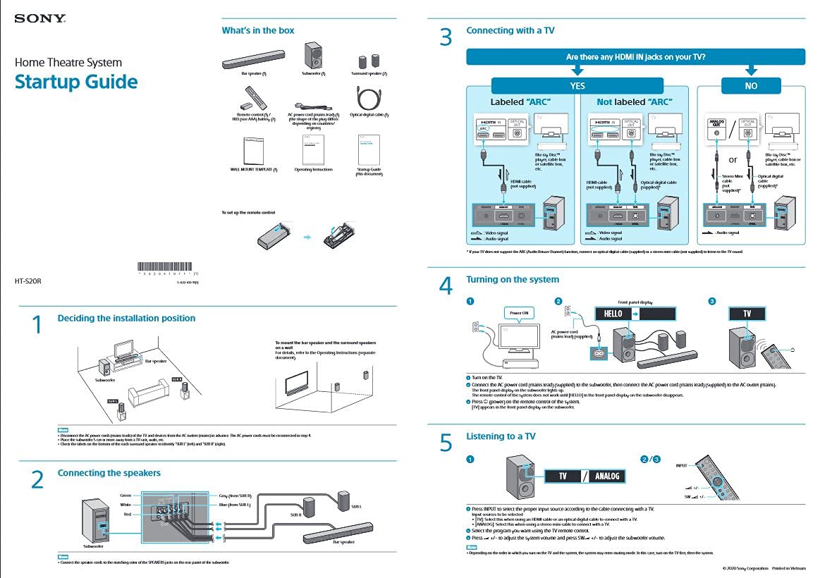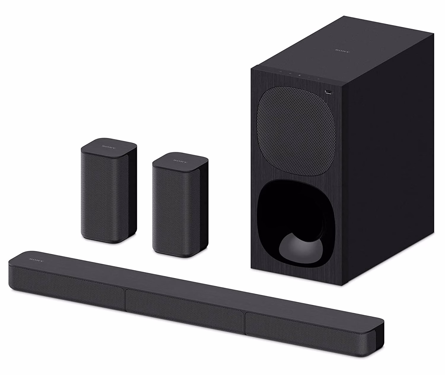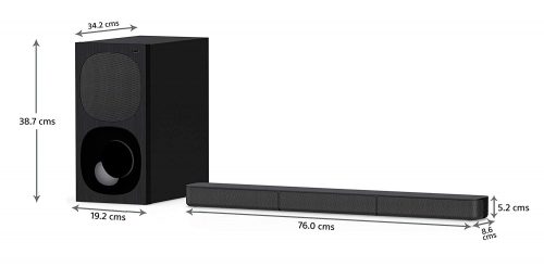 Sony HT-S20R 400 Watt Real 5.1 Channel Wireless Bluetooth Soundbar with Dolby Digital (Blue, Black) From the manufacturer Key Features: Sony HT-S20R 400 Watt Real 5.1 Channel Wireless Bluetooth Soundbar with Dolby Digital (Blue, Black) Dolby Audio : Enjoy dramatic, high-quality surround sound from 5.1 separate audio channels with Dolby Digital 5.1ch Surround Sound : 5.1 channels of real surround sound. Rear speakers and an external subwoofer work with a 3-ch soundbar to deliver dynamic, immersive, cinematic sound. Power Output : 400W power output puts you right at the heart of action Bluetooth Connectivity : Easily play your favourite content via bluetooth connectivity USB Playback :Use the USB port to plug and play music from a memory stick with ease Sound Mode :A button for every sound—choose the mode that’s right for whatever you’re watching or listening to, including Auto, Standard, Cinema and Music. You can also select Night and Voice modes HDMI Arc and Optical Connectivity : Connect your soundbar with TV via single cable connection