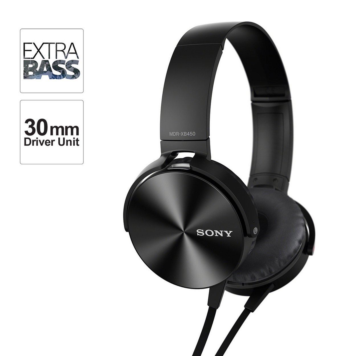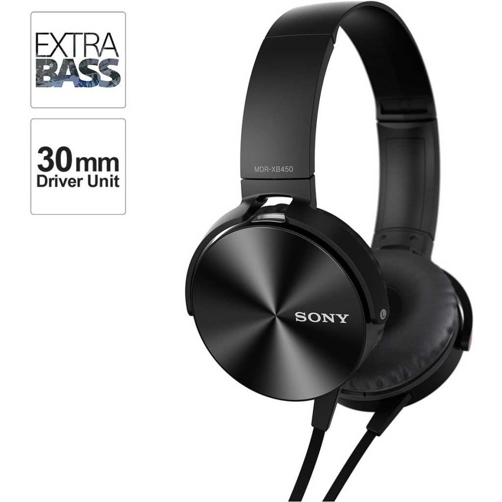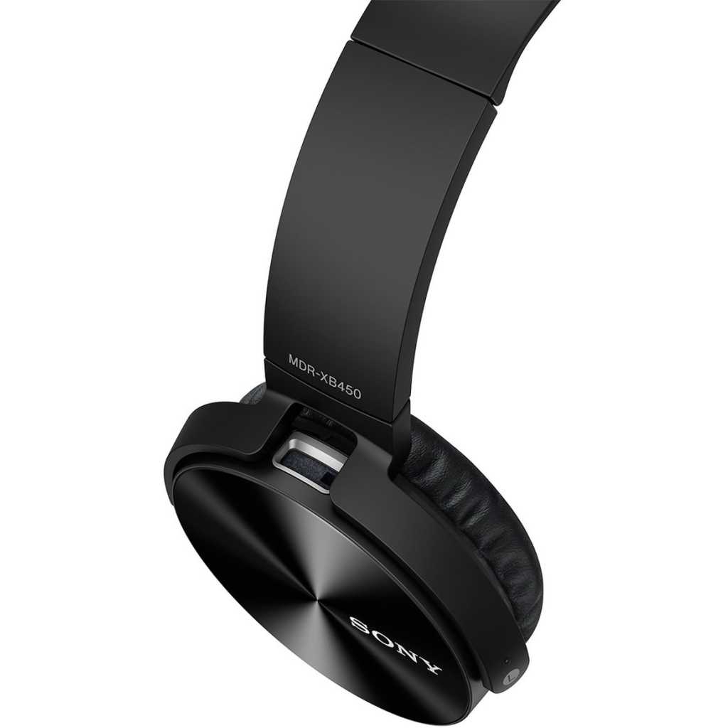 Sony MDR-XB450 On-Ear EXTRA BASS Headphones (Black). From the manufacturer Key Features: Sony MDR-XB450 On-Ear EXTRA BASS Headphones (Black). Headphones made for Electronic Dance Music(EDM) 30 mm closed, dynamic driver unit for powerful EXTRA BASS sound Portable, swivel folding design for listening on the go Cushioned ear pads for long-wearing comfort; Cord length: 1.2 m Tangle-free flat serration cord for reducing tangling Match your style with Vivid colours Flashy metallic finish housing Enjoy enhanced bass with the balanced rigidity and high response Extra Bass Diaphragm, which maintains powerful performance through hours of listening.