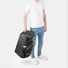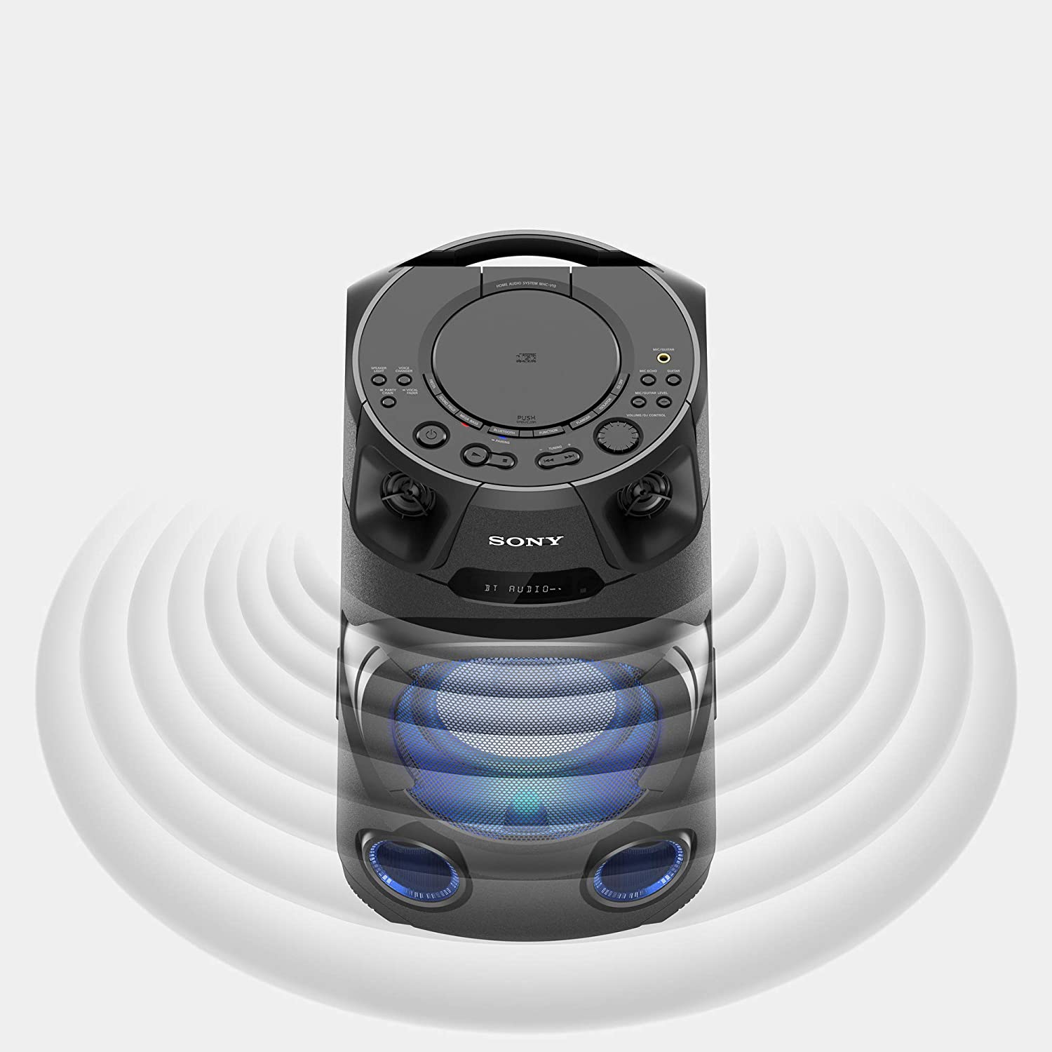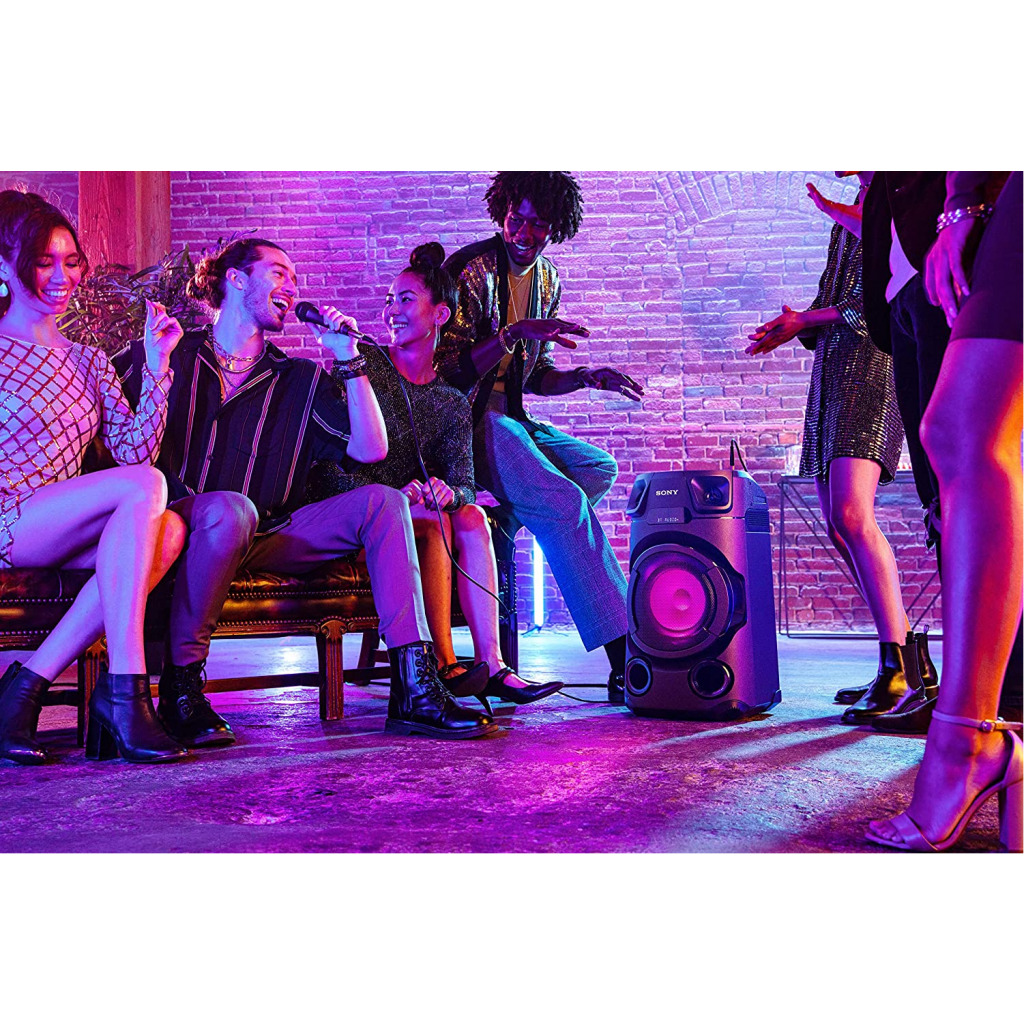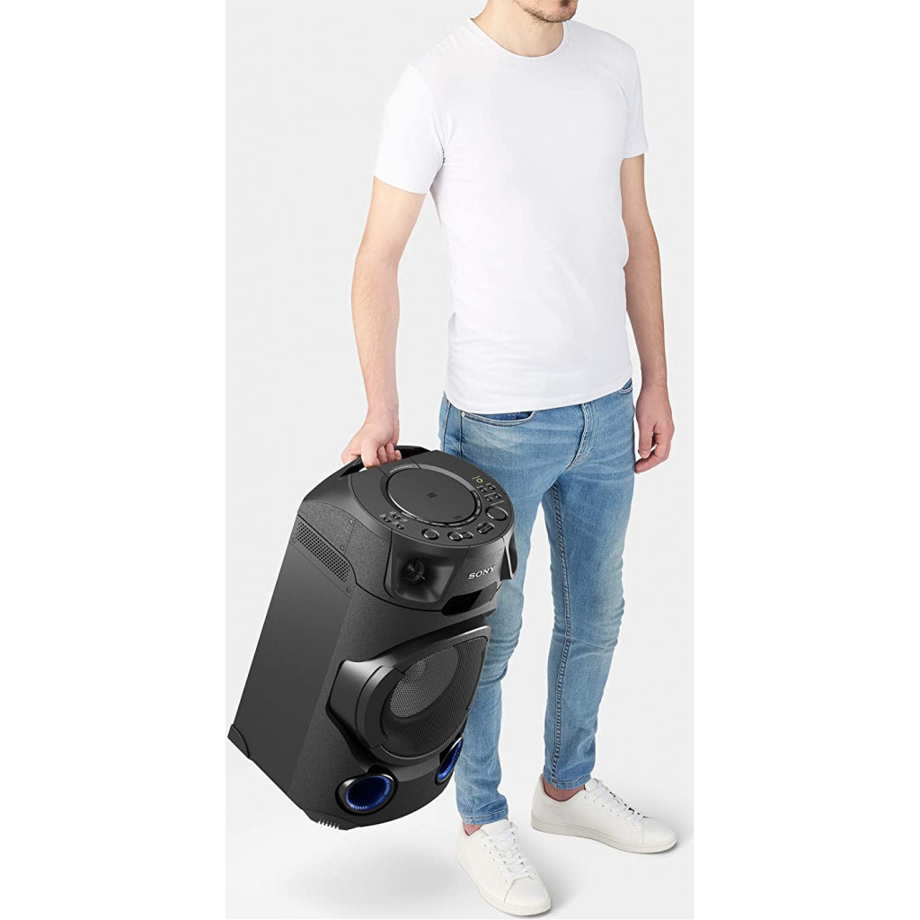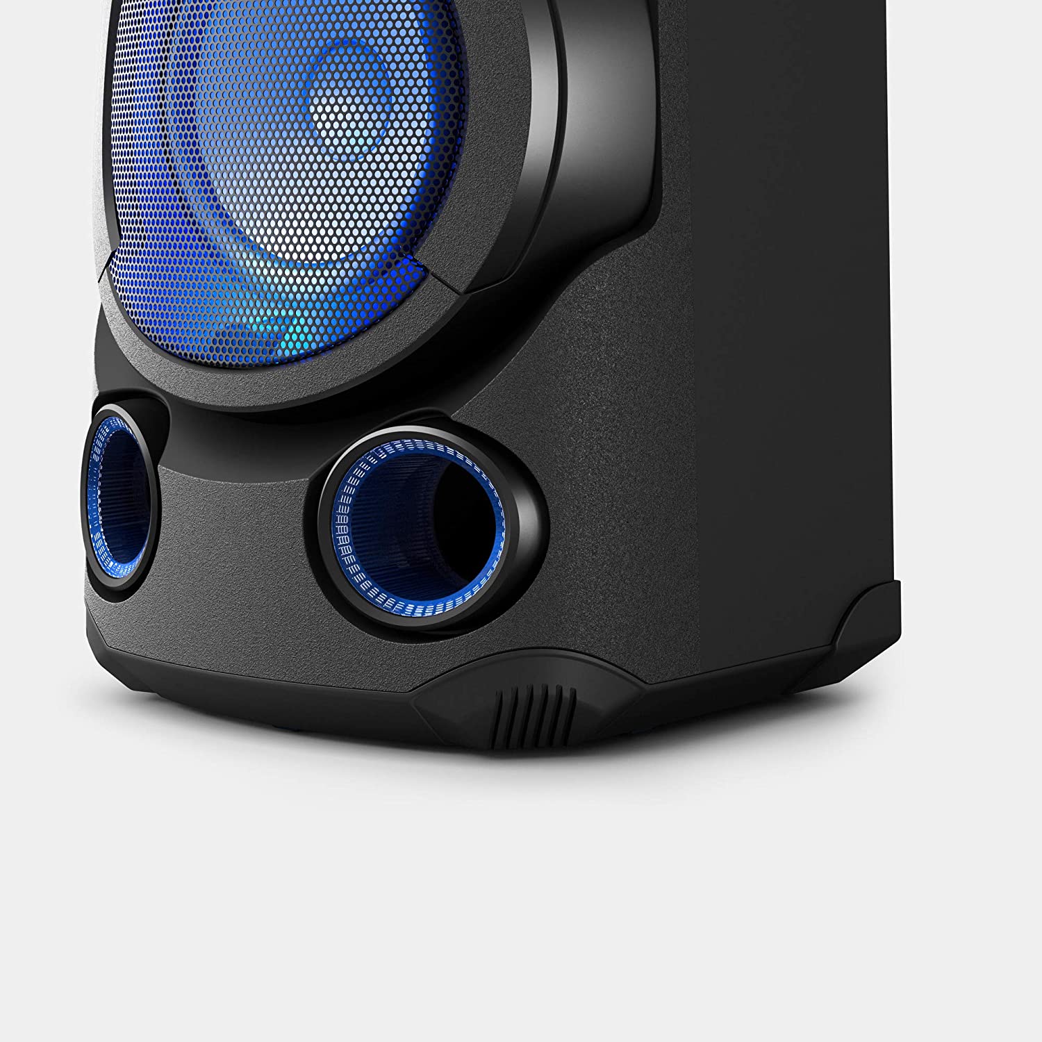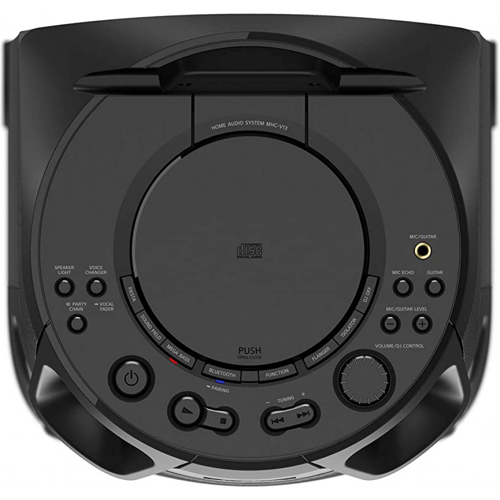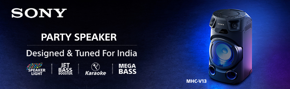 Sony MHC-V13 Wireless Bluetooth Portable Party Speaker (Black) From the manufacturer Key Features: Sony MHC-V13 Wireless Bluetooth Portable Party Speaker (Black) Jet Bass Booster :Feel the beat at Long distance with Jet Bass Booster Speaker Light : Enjoy an authentic or festival atmosphere with speaker light Karaoke/Guitar Input: Karaoke & Guitar Input to unlease your inner POP Star Bluetooth & NFC connectivity :One touch wireless listening with NFC and Bluetooth Music center & Fiestable App :Control music and sound settings right from your phone. Plus, the Fiestable app puts you in charge of the light colours and lets you activate DJ and karaoke modes Karaoke Ranging :Find your Singing Superstar with Karaoke Ranking via Fiestable APP CD Player : Now you can enjoy your favorate movies through CD playback Handle : Just hold the convenient carry handle to easily move the party between rooms
