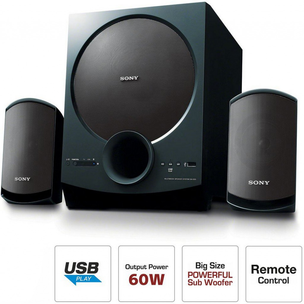 Sony SA-D20, 2.1Ch 60W Home Theatre Satellite Speakers With Bluetooth, Usb, Nfc Compatible, Big Size Subwoofer – Black From the manufacturer Key Features: Sony SA-D20, 2.1Ch 60W Home Theatre Satellite Speakers With Bluetooth, Usb, Nfc Compatible, Big Size Subwoofer – Black 2.1 channel multimedia speakers, USB and audio in playback Enjoy powerful bass with large sub woofer and 60W output Enjoy wireless music with mobile through Bluetooth streaming Designed for use with TVs, PCs and music players USB port for easy connectivity Stylish black gloss speaker finish Supplied with remote control NFC Compatible compatible devices : Universally Compatible connectivity technology : USB, Audio In, Bluetooth and NFC