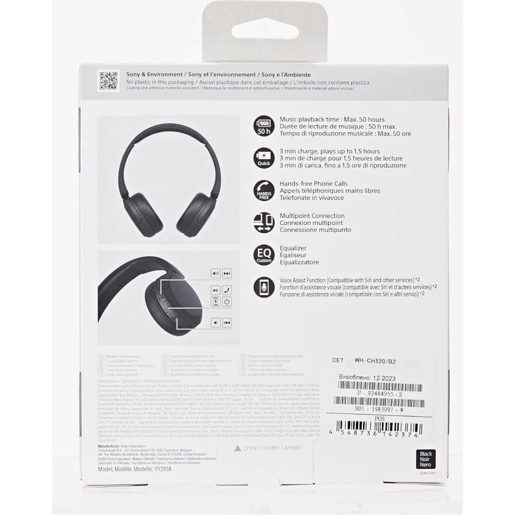 Sony Wireless Bluetooth Headphones - Up to 50 Hours Battery Life with Quick Charge Function, On-Ear Model - WH-CH520B.CE7 - Limited Edition - Matte Black