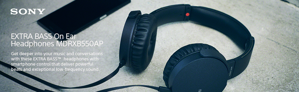 Sony XB550AP Extra Bass On-Ear Headset/Headphones with mic for phone call, Black Key Features: Sony XB550AP Extra Bass On-Ear Headset/Headphones with mic for phone call, Black Feel the power of extra bass. Connectivity Technology: Wired 30 millimeter driver units deliver balanced sound with an exceptional low-end thanks to 5 – 22,000 Hz Dynamic Frequency Response Take calls and switch tracks with the in-line remote and mic Customize your controls with the smart key App1 Bold style and cushioned ear pads for long-listening comfort