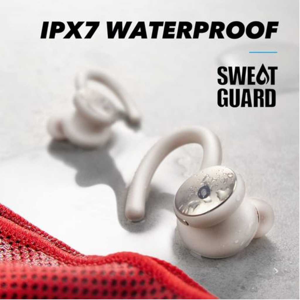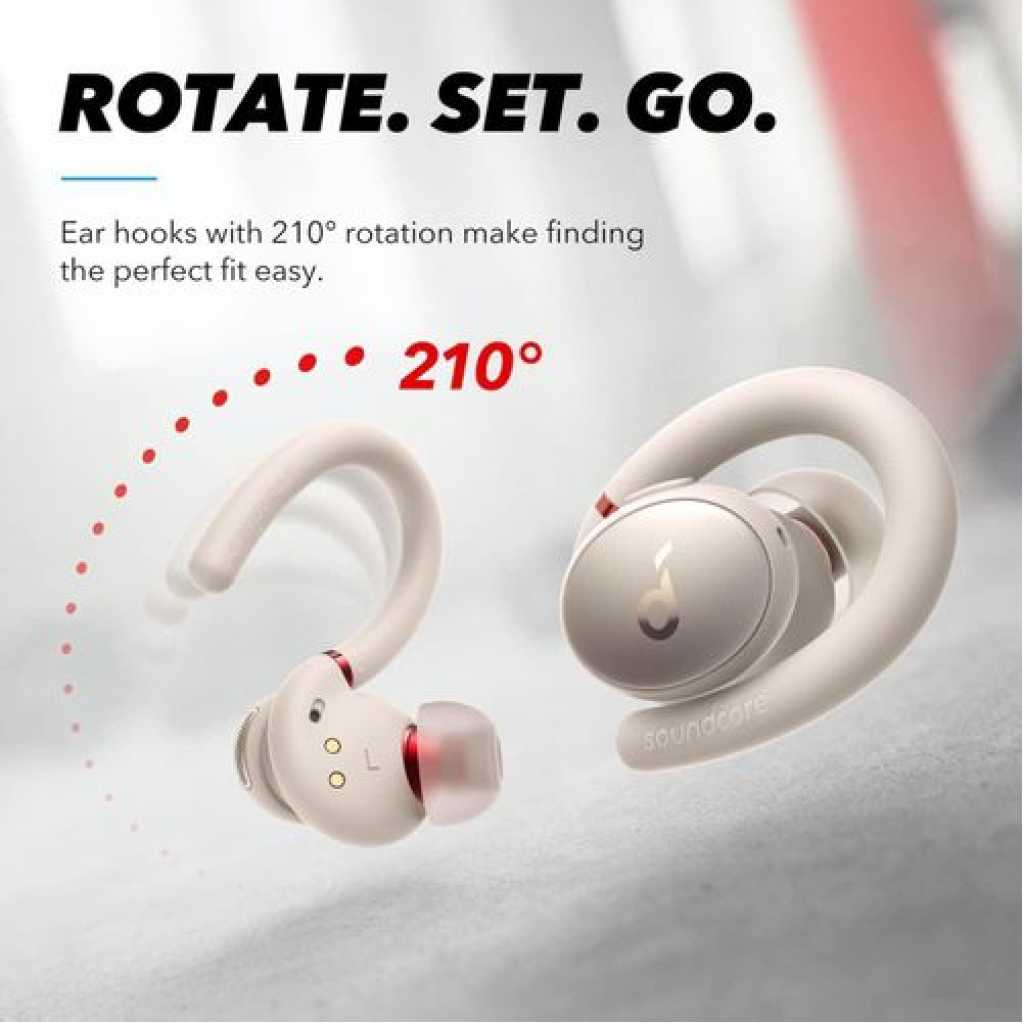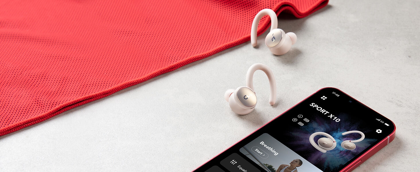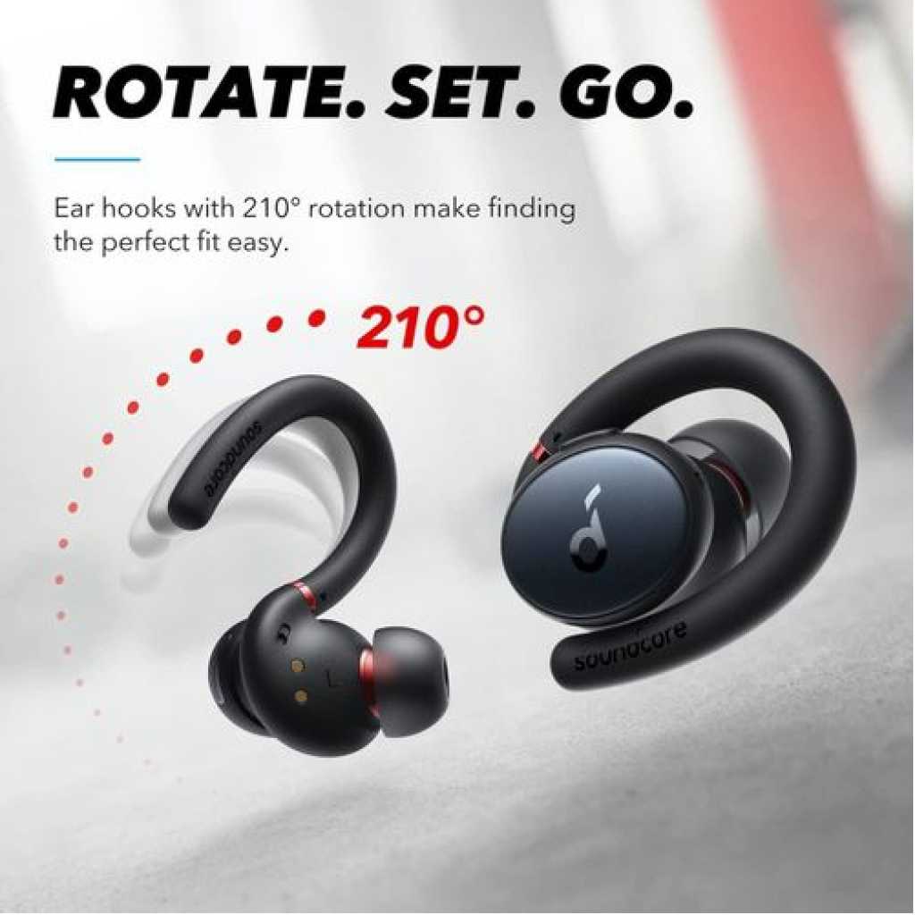 The Ultimate Fit Sport X10 have unique over-ear holders that rotate up to 210°. Rotate to find the perfect spot for a secure and comfortable fit that won’t budge, even during intense exercise sessions. Big Sound with Pumped-Up Bass A dynamic acoustic system and BassUp technology enhance and intensify sound for 2× more bass. Next page Calls with Superior Clarity 6 mics and noise cancellation pick up your voice clearly and block out background noise. Turn on Wind Noise Reduction to further improve call quality. Easy to Open Charging Case Simply press the button on the charging case to open with just one hand. It’s a small detail, but one that saves you time and effort when you’re busy. Easy to Control Both earbuds have a button that is simple to use, even mid-workout. Use the Soundcore app to customize the controls to suit your needs. On-the-Go Listening Sport X10 are small and lightweight for a comfortable fit, and the slim charging case easily fits in your pocket or gym bag. Ultimate Fit and Comfort: Twist the 210° rotatable ear holders until you find the perfect spot for your ears. The unique design and lightweight build keeps Sport X10 workout earbuds comfortably and securely in place throughout your workout. Hardcore Beats for Maximum Motivation: The dynamic acoustic system delivers 2× more bass while preserving the clarity of mids and treble. BassUp technology analyzes and enhances your music’s bass in real-time for an extra boost. Exercise-Proof Buds: Sport X10 workout earbuds have a fully-waterproof, IPX7-rated build that stops liquids in their tracks. For further protection, our exclusive SweatGuard technology defends against the corrosive properties of sweat. Up to 32 Hours Playtime: Get 8 hours of music from a single charge of the workout earbuds and add an extra 3 full recharges via the charging case. Personalized App Experience: Use the in-app breathing exercises to focus on your breathing before working out, tailor the sound profile with 22 EQ presets, and customize controls