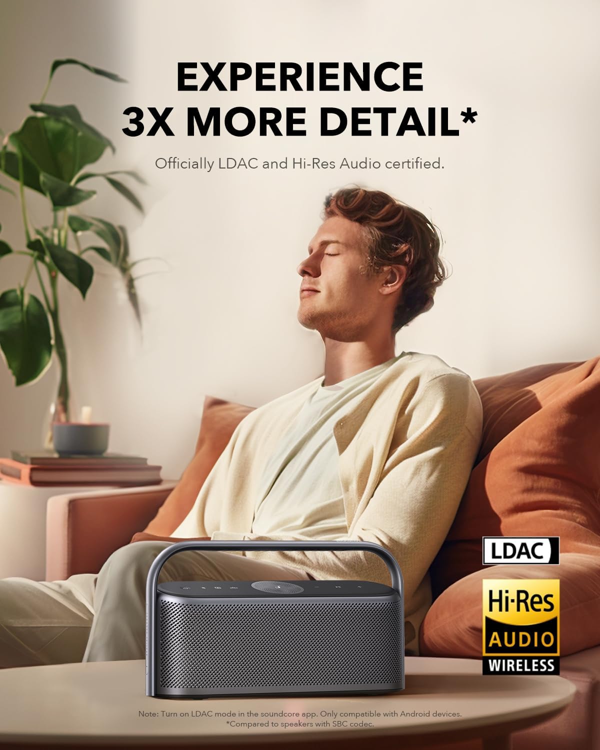 Soundcore Motion X600 by Anker Portable Bluetooth Speaker, Hi-Res Spatial Audio with Wireless 50W Sound, IPX7 Waterproof, Pro EQ, AUX-in, Portable Speaker for Home, Office, Backyard and Bathroom Use