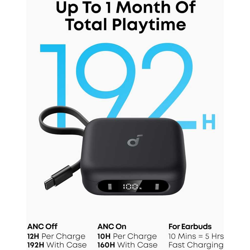 Portable Phone Charging: The case charges iPhone 16 Pro to 50% or Samsung S24 to 45% with 10W and 3,000mAh power. Ultra-Long Battery Life: Listen for up to 12 hours on a single charge; the case extends it to 192 hours. A fast 10-minute refuel gives you another 5 hours of music. Adaptive Noise Cancelling: Monitors your surroundings and utilizes advanced algorithms to mute all noises for peaceful journeys. Thunderous Bass: soundcore P41i’s 11mm composite drivers deliver captivating sound, paired with BassUp tech to unleash intense, high-impact bass. Superior Call Quality: 6 mics and AI noise reduction ensure you’re heard loud and clear in crucial calls or urgent voicemails wherever you are. Built-In Phone Stand: Watch your favorite shows on the go with ease. The stand automatically snaps back into the storage slot when the case closes—a patented design for convenience.