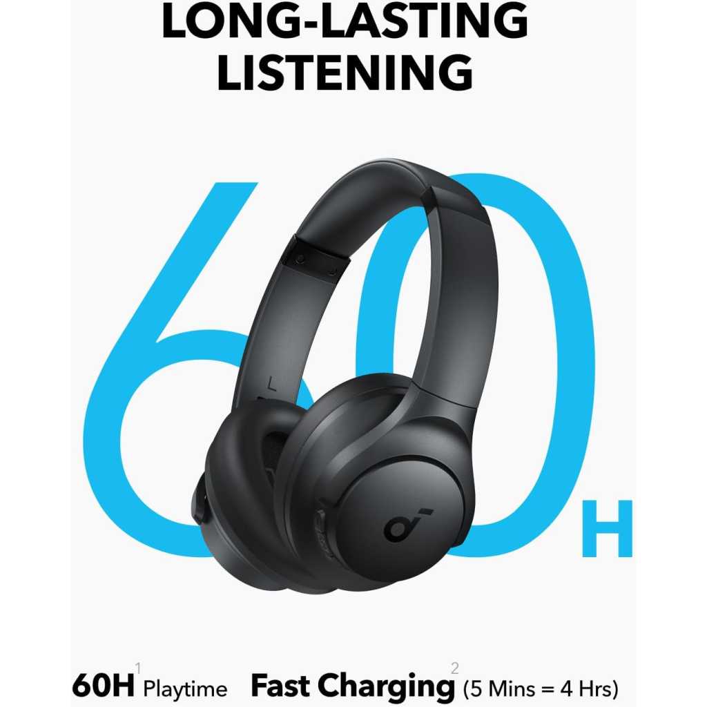 Hi-Res Audio: Featuring custom 40mm dynamic drivers, soundcore Q11i Bluetooth Headphones deliver Hi-Res soundd when connected using the included AUX cable. One-Touch Bass Boost: With BassUp technology, simply press the BassUp button to instantly boost the bass. Perfect for genres like EDM and hip-hop, it ensures deeper, more powerful bass to create an immersive experience. 60-Hour Playtime: Enjoy up to 60 hours of playtime with soundcore Q11i Bluetooth Headphones. A quick 5-minute charge gives you an extra 4 hours of listening, so you can stay in the groove for Ionger. Detachable Ear Cushions: Easily detach and replace soundcore Q11i’s ear cushions. Note: soundcore Q11i Bluetooth Headphones do not feature active noise cancelling (ANC). Key Features: Hi-Res Audio: Featuring custom 40mm dynamic drivers, soundcore Q11i Bluetooth Headphones deliver Hi-Res sound when connected using the included AUX cable. One-Touch Bass Boost: With BassUp technology, simply press the BassUp button to instantly boost the bass. Perfect for genres like EDM and hip-hop, it ensures deeper, more powerful bass to create an immersive experience. 60-Hour Playtime: Enjoy up to 60 hours of playtime with soundcore Q11i Bluetooth Headphones. A quick 5-minute charge gives you an extra 4 hours of listening, so you can stay in the groove for longer. Detachable Ear Cushions: Easily detach and replace soundcore Q11i’s ear cushions. Note: soundcore Q11i Bluetooth Headphones do not feature active noise cancelling (ANC).