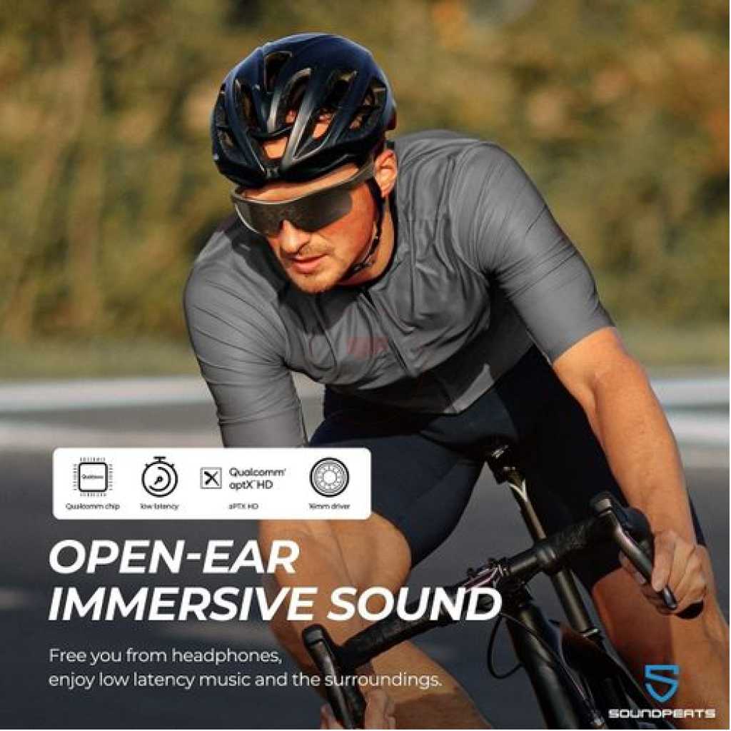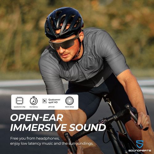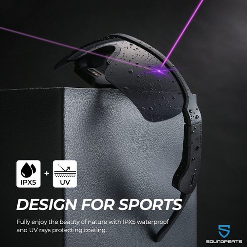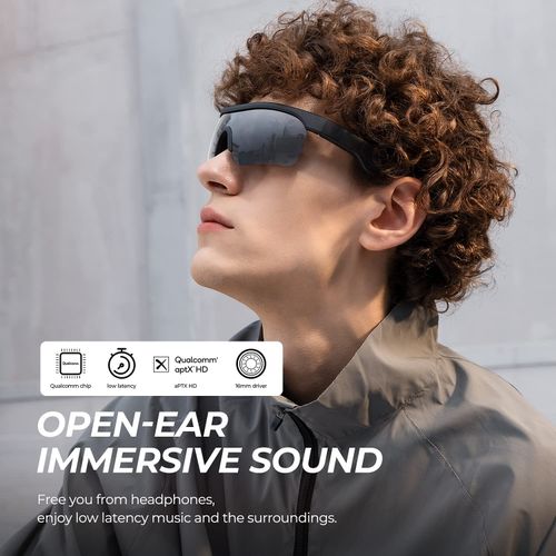 SoundPEATS Frame- Smart Audio Glasses with Open Ear Earphones, Bluetooth Glasses Speaker 【Open-Ear Audio & Multi-Connection】 The smart audio sunglasses with open-ear speakers, which are powered by Qualcomm 3034 and Bluetooth 5.1 aptX HD technology, can ensure low power consumption and low latency. With multi-connection mode, the audio glasses support connecting 2 phones at the same time, whether the phones are iOS or Android systems, it can achieve easy and stable pairing in 33 ft(10M). 【16mm Drivers & Dual-Mic 】Designed with the 16mm super big drivers, SoundPEATS Frame S smart sunglasses deliver extraordinary crystal-clear fine sound and a wide sound stage. The glasses are built-in with dual mics and cVc noise reduction technology, which can enhance the call voice clarity and reduce the ambient noise around to make you enjoy smooth calls, music, navigation, and voice assistant anywhere at any time. 【One-key Control & 5H Playtime】With Bluetooth glasses, you don’t have to pick up your phone all the time when you listen to music and make phone calls while driving, jogging, or walking. The button in the frame provides easy access to control volumes, answer/hang up calls, pause/replay music, switch music, activate voice assistant, etc. The smart glasses can be fully charged in 2 hours via a charging adapter, which supports 5 hours of playtime. 【IPX5 Waterproof & Anti-UVA/UVB 】Our Bluetooth glasses are IPX5 waterproof which can resist sweat and splashing water. You can still enjoy sports, music, and calls in these situations. Equipped with UVA/UVB rays protecting coat, the glasses can block 99% of rays to protect your eyes from damage on sunny days, and bring clear comfortable sight for outdoor activities, like driving, cycling, and walking. 【Ergonomic Design & Comfortable Wearing 】With weighing 1.55oz and ergonomic design, the glasses are easy to carry out and support long-time wearing without any discomfort. With stylish black color, sunglasses are suitable for both men and women. Plus the extra glasses cloth and 2* nose pads, you can keep sunglasses clean and use them for a long time.