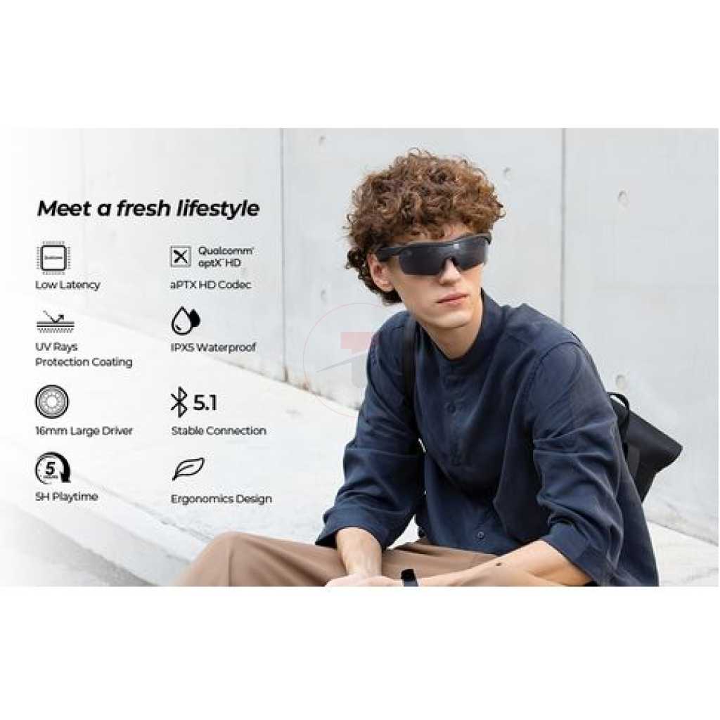 Key Features: SoundPEATS Frame- Smart Audio Glasses with Open Ear Earphones, Bluetooth Glasses Speaker SoundPEATS Frame S – Open-ear Smart Audio Sunglasses LOW LATENCY – Adopt the latest Qualcomm QCC3040 chipset with Bluetooth 5.0 stable connection. LOSSLESS SOUND – 16mm large driver and Qualcomm a PTX HD audio codec for Immersive Sound and lossless quality. UV PROTECTING -Blocking 99% of UVA/UVB by UV-protecting coating on lenses. ERGONOMIC DESIGN Ultra-lightweight: 43g. – Bridge: 20 millimeters; Arm: 120 millimeters. Lens width: 140 millimeters; Lens height: 50 millimeters.
