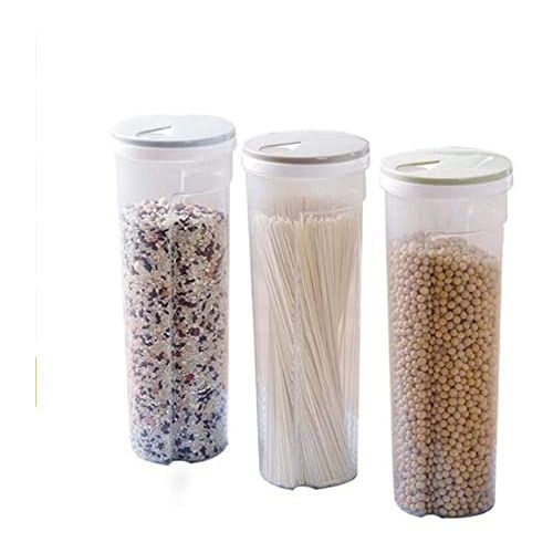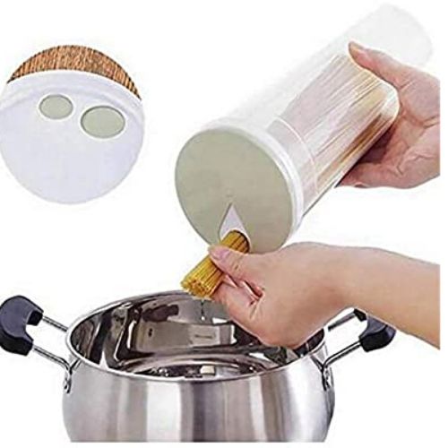 Key Features: Spaghetti Storage Container, Cereal Food Box, Colourless. Transparent design, the items inside can be seen at any time. Use a rotating can. Two outlets, the large hole outlet is two people. The small hole outlet is one person. The body of the can is embossed. Easy to take. Not easy to fall. Multi-purpose, you can collect all kinds of grains, noodles and other items. Thick and odorless. More assured, the top cover is detachable and easy to clean.