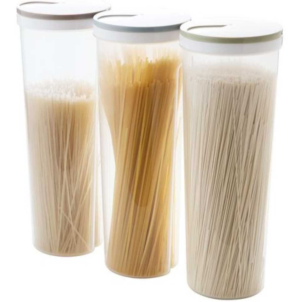 Spaghetti Storage Container, Cereal Food Box, Colourless. Made of high quality PP material, which is waterproof, dampproof, antiseptic and mothproof. Not only suit for storage of noodles, but also for dry food, cereal, rice, beans, nuts, sugar, coffee bean, tea and more. Top unique rotatable lid design allows you can take out the quantified noodle as you need. Transparent body design allows you see the contained objects clear at a glance, no need to open it. Bottle body concave convex design, easy to take, ensuring a classified storage, clean and tidy. Specification: Type: storage box. Size: 10*5*8.3*28.8cm. Color: khaki, light blue, light green. Material: PP.