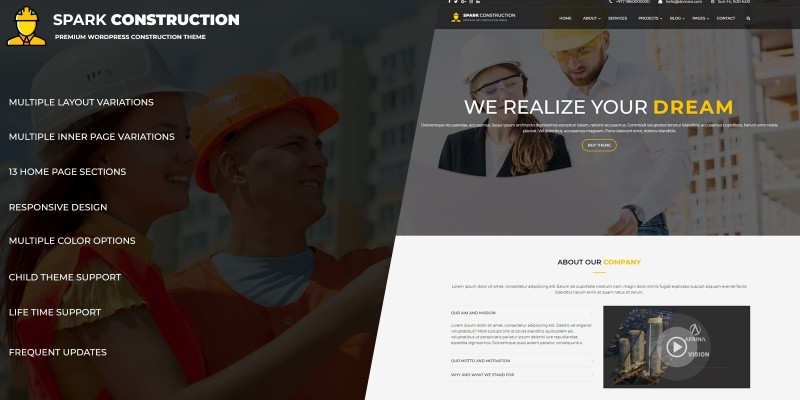 Spark Construction - WordPress Construction Theme. Spark Construction is a WordPress theme for company or agencies related to construction, architecture, business, and corporate.