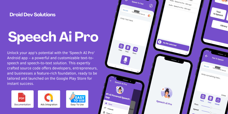 Speech AI Pro Text-to-Speech Android App . Convert speech to text & text to speech effortlessly with Smart Speech AI. Seamless voice-to-text with AdMob integration!