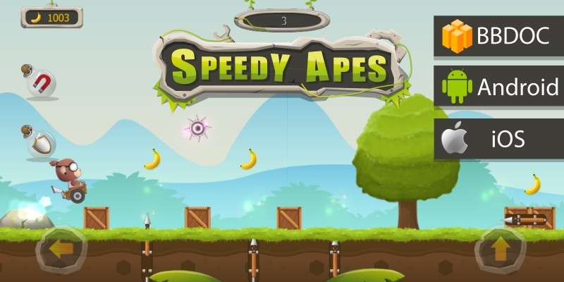 Speedy Apes Buildbox Template. Play as an ape racing across beautiful landscapes, avoiding deadly obstacles, and collecting delicious bananas! ​