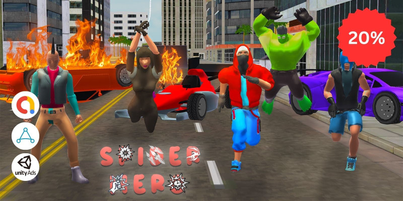 Spider Hero Unity Game Template. Build your action game with Spider Hero Unity Template! AI enemies, big city, customization, & monetization. 20% OFF now!