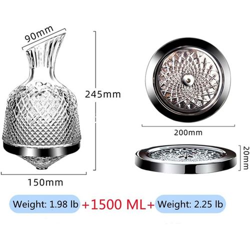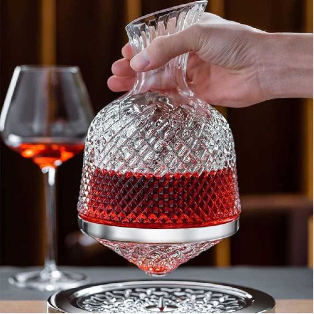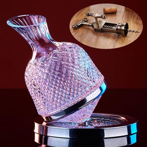 Wine tasting requires a good atmosphere and a good tool to activate the original taste buds. Our wine decanter set is made of lead-free crystal. It is cutted by hand with diamonds. The wine glass has a unique shape and can rotate 360 degrees. It can decanter the wine healthy and quickly while retaining the original aroma of the wine. The wine crystal is a good helper for business reception and family gatherings. It can be used to sober up,and it can also be used to hold fruit juices, etc. Of course, the wine decanter that shines like a diamond is also given as a wedding gift to the secret sister gift exchange. Product details: Weight of decanter: 1.98 lb Base weight: 2.25 lb Capacity: 1500 ml Maintenance method: 1.The crystal spinning decanter ball is slightly heavier, please handle it gently. 2.Rinse and drain with clean water. The wine decanter crystal is a little heavier. Please handle with care. 3.Please keep wine crystal bottle out of the reach of children. Key Features: 1.[360°ROTATING DECANTER] Wine tasting requires a good atmosphere and a good tool to activate the original taste buds. Our wine decanter set is made of lead-free glass. It is hand cut with diamonds. It has a unique shape and 360° rotation. 2.[THE UNIQUE CARVED BASE DESIGN] which contains magnetic absorption, when you turn the wine glass, you don’t have to concern about the separation of the bottle and the base, it will naturally stop after rotating. This is a good experience, which is 50% percent faster than standard decanters. 3.[COMFORTABLE TO USE]The spout utilizes a cold cut process, the cut is smooth and round without wavy, the 45° percent inclined design can prevent the wine from spilling and dripping, and the bottleneck is non-stray and polished, so that you will not slip your hands when preparing wine. 4.[EXCLUSUVE CUSTOMIZATION]Items you get include a rotating decanter, a base, a custom bottle opener.Using our wine decanter, we have also customized a bottle opener specially for you. The bronze metal texture is used together with the crystal decanter or as a gift, which will bring you a different experience. Perfect gifts for the best man, wedding, celebration, father’s day or housewarming. It is also a good helper with business receptions and family gatherings.