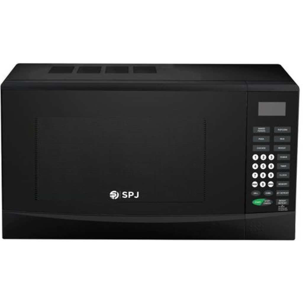 Key Features: SPJ 28 Liters Digital Microwave With Grill Oven – Black. Product Type: Microwave Grill Brand: SPJ Model: MWBLU-28L005 Colour: Black Capacity: 28L Power: 1400W, 230/50Hz Grill power: 1000W Cooking level option: 6 Timer: 95min Turntable: Yes Grill: Yes Dimension: 608*468*366mm