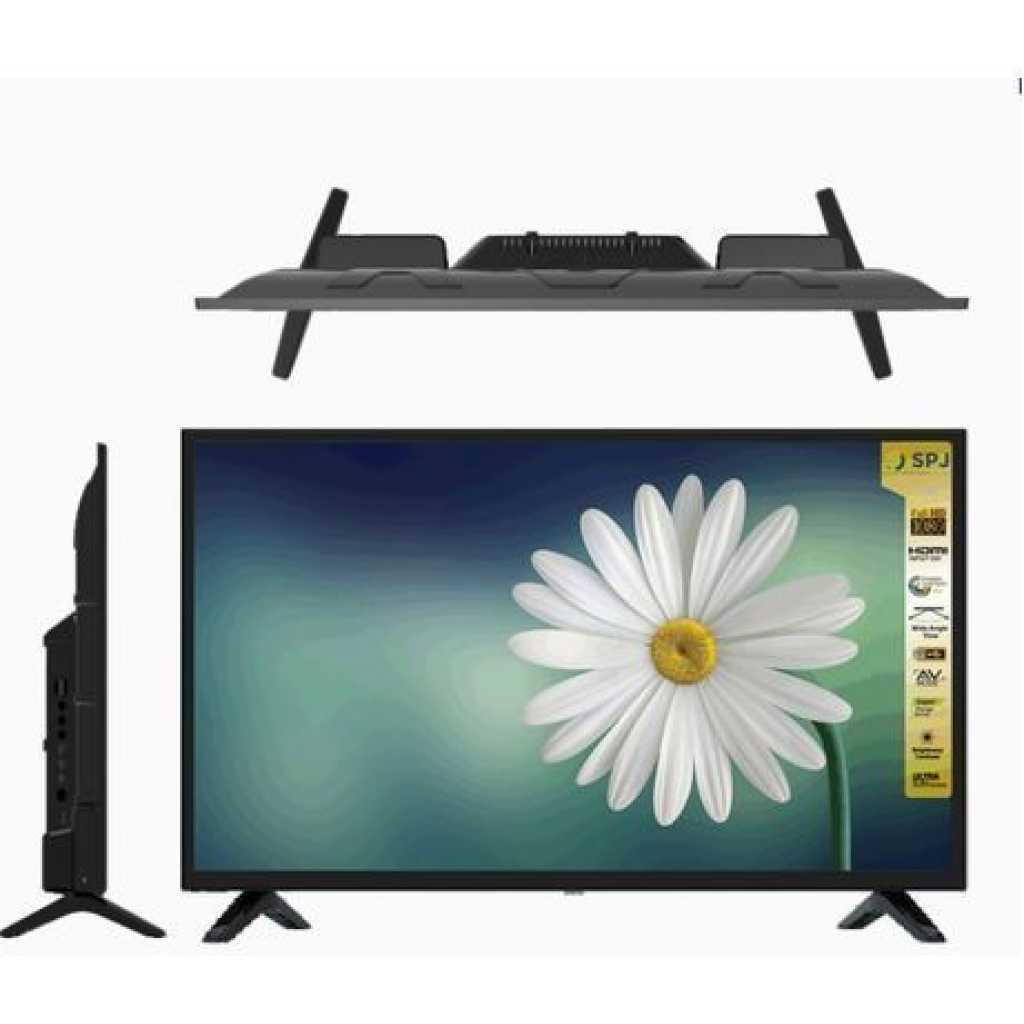 SPJ 40 Inch LED TV Free To Air Inbuilt Decoder – Black. Experience immersive entertainment when watching your favorite movies and TV shows, thanks to the Spj 40-inch Full HD LED LCD Smart TV’s superb image quality . Offers a 1920 x 1080 resolution and an 8-bit colour depth, letting you watch your favourite media content with impressive clarity and vibrance. Direct Lighting system delivers images with enhanced brightness and contrast levels. Dolby Digital technology allows it to produce sharp, three-dimensional sound to accompany your media content. Gives you access to various online streaming services, such as Stan, FreeView Plus, and Netflix*, so you get to enjoy watching your favourite movies and TV series on demand Built-in Personal Video Recorder allows you to conveniently record your favourite scenes and view them at a later time Engrossing Entertainment32inch screen with wide viewing angles provides a large, clear, bright view from every seat in the roomFull HD resolution liven up the screen with crystal clear, deeply contrasted, optimally bright, and boldly hued imagesTwo built in 7W speakers produce immersive, loud, and clear sounds Fast, Easy to Use SystemUser friendly interface for easy operations and understanding of its featuresHighly responsive and smooth Share and View2 USB ports for viewing content stored on flash drives and portable HDDsThree HDMI ports process each content from external sources for improved visual and sound clarity Key Features: SPJ 40 Inch LED TV Free To Air Inbuilt Decoder – Black. 40 INCHES ANALOG TV FULL HD LED TV 3*HDMI PORTS 2*USD PORTS MULTILINGUAL MENU ENERGY SAVING