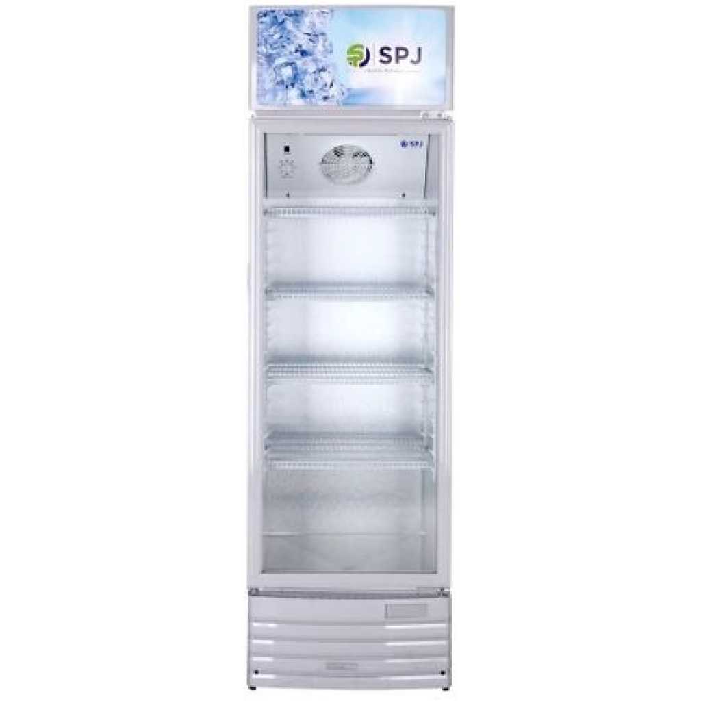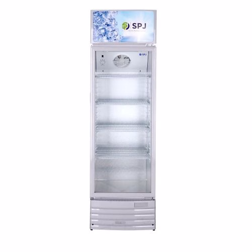 SPJ 400-Litres Single Display Cooler SCCSTS-400C016; Vertical Display Chiller, Single Door Showcase Display Refrigerator The SPJ 400-liter Refrigerator Show Case Is A Single Door Beverage Cooler that has Mechanical Temperature Control With an Adjustable Thermostat. It Features An Auto-Defrost System With an Integrated Arc Door (One Piece). This Beverage Cooler With A Fashionable Appearance Uses Environment-Friendly Technology. The Presence Of Convenience Wheels Makes It Easy To Move From One Place To Another. The SPJ Showcase Refrigerator Also Has a Low Voltage Start And Gives Higher Cooling Efficiency With Internal And Bottom Fans. It Also Features a Hot Air Flow To Avoid Water Condensation On The Door The SPJ Showcase Refrigerator has a low voltage start and gives higher cooling efficiency with internal and bottom fans. It also features a hot air flow to avoid water condensation on the door. Features: Type: Showcase Beverage Chiller Mechanical Temperature Control with adjustable Thermostat Auto Defrost System Integrated Arc Door (One Piece), Fashionable Appearance Inner Light for Bright Showing Effect of Vertical Light to Have Better Lighting Double Layer Door Glass Design Environment-friendly Technology Convenience Wheels Design for Easy Moving With self-evaporate Water Disposal Pan Key Features Capacity (Litre) 400LTR Beverage Display Cooler Yes SPJ Warrant Type: Showcase Beverage Chiller Mechanical Temperature Control With Adjustable Thermostat Auto Defrost System Integrated Arc Door (One Piece), Fashionable Appearance Inner Light For Bright Showing Effect Of Vertical Light To Have A Better Lighting Double Layer Door Glass Design Environment-Friendly Technology Convenience Wheels Design For Easy Moving With Self-Evaporate Water Disposal Pan Low Voltage Start With Internal And Bottom Fans To Provide Higher Cooling Efficiency With Hot Air Flow To Avoid Water Condensation