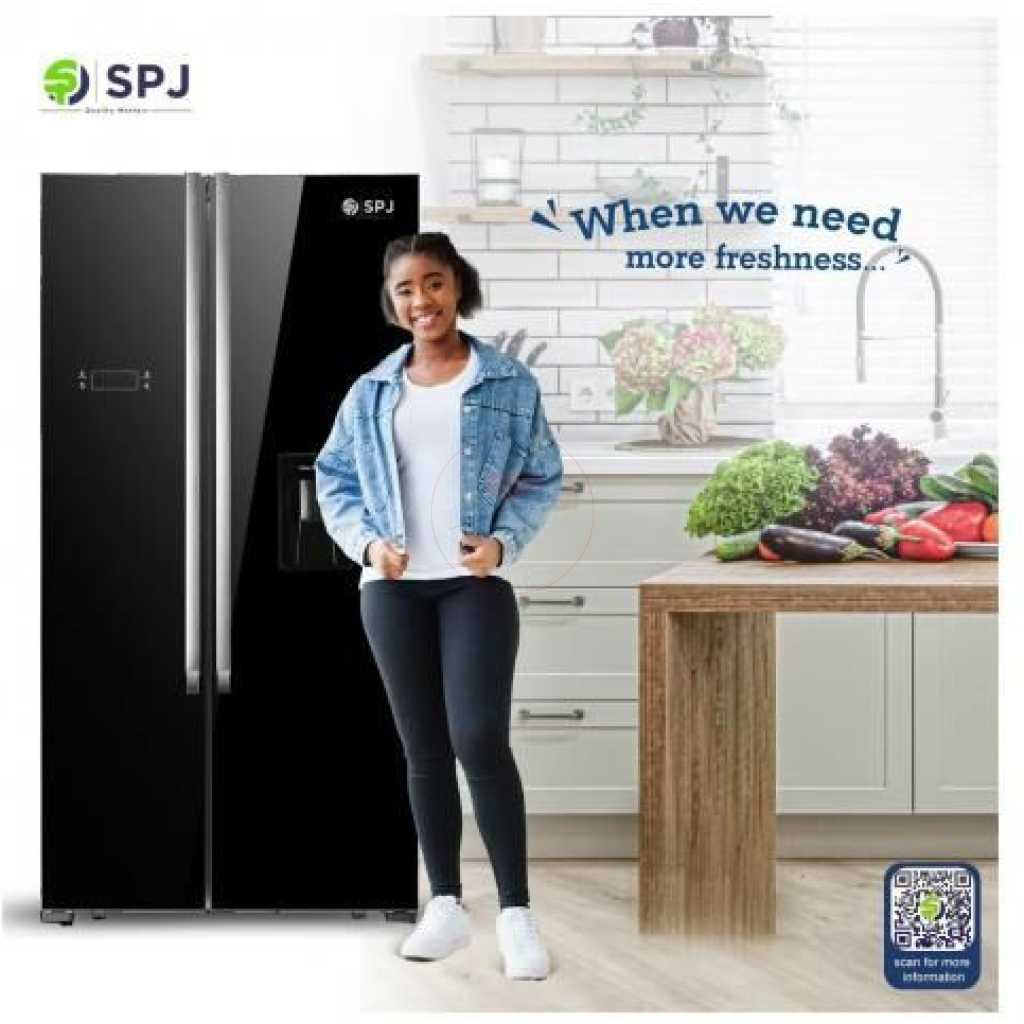 699 Litres Side By Side Elegant French Door Refrigerator – Black Keep your perishables fresh and your kitchen classy with the SPJ 699 Pure Flat Stainless French Door Fridge. Driven by an inverter compressor motor, the fridge operates efficiently and quietly. This French-door refrigerator comes with total no-frost multi-air flow system which will keep your food fresh. The salad crisper will ensure your greens stay fresh for longer. The Eco energy function and holiday function will make sure that your electricity bills stays small. The fridge comes with interior light and the freezer box has a twist-style icemaker. Features & Benefits Multi -air flow system Super cool/ super freeze function Salad crisper and transparent easy-slide drawer