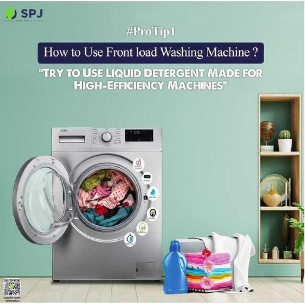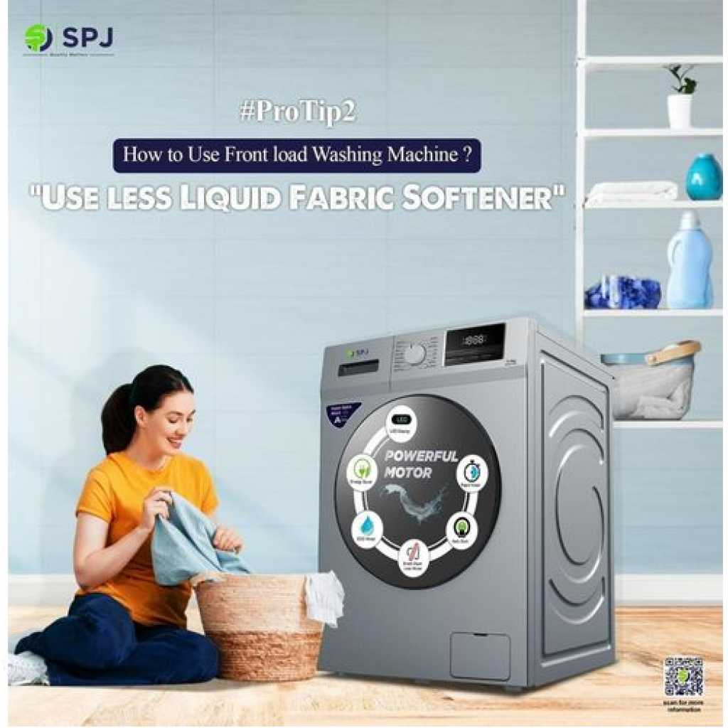 SPJ 7Kg Front Load Fully Automatic Washing Machine – Grey. The SPJ 6Kg Washing Machine with streamlined designed washing machines come with user-friendly control panels, as well as the options and performance you need. SPJ line of washing machines offer innovative features including Top load – Depending on your preference, the SPJ washing machine models are designed to be energy and water efficient. Time/Space-Saving – Washer control timer runs for up to 15 minutes while the spin cycle timer runs for up to 5 minutes each load. Feel free to choose any time to wash. Easy to move and transport to anywhere, lightweight and space-saving design allows it easily fit in a bathroom or closet, ideal for camping trips, dormitories, or anywhere with limited space. Simplest yet most effective – Put the clothes in – fill with water – set time – hit start button. wait for a while. Take it out. Simply enjoy clean laundry and fragrance of laundry detergent. washer, that with large wave pulsates and new water flow, will not only produced less twisting of the clothing but also better cleaning and washing effect , Features a drainage tube which allows you to easily drain out dirty water. Considerable design & Energy saving – Plastic body ensures this machine will never be rust eaten. Always quiet, neat and clean. Small size with low power consumption can save much energy. Key Features: SPJ 7Kg Front Load Fully Automatic Washing Machine – Grey. Wash Capacity: 7KG 16 wash programs ‘Delay End Energy Saving for Money (Energy Efficiency Class: A+++) Super Quick Wash for Time Saving Intelligent LED Display Snowflake Drum for Clothes Protecting Smart Spin Balance control. Drum Self Clean for Health 45-degree High Handle Design Max Spin Speed Option: 1200 rpm