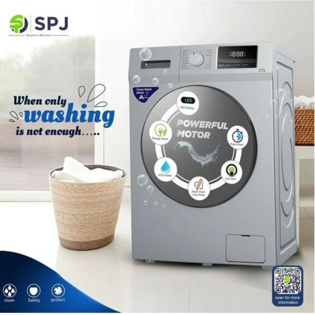 Key Features: SPJ 8Kg Front Load Fully Automatic Washing Machine – Grey. Wash Capacity: 8KG 16 wash programs ‘Delay End Energy Saving for Money (Energy Efficiency Class: A+++) Super Quick Wash for Time Saving Intelligent LED Display Snowflake Drum for Clothes Protecting Smart Spin Balance control. Drum Self Clean for Health 45-degree High Handle Design Max Spin Speed Option: 1200 rpm